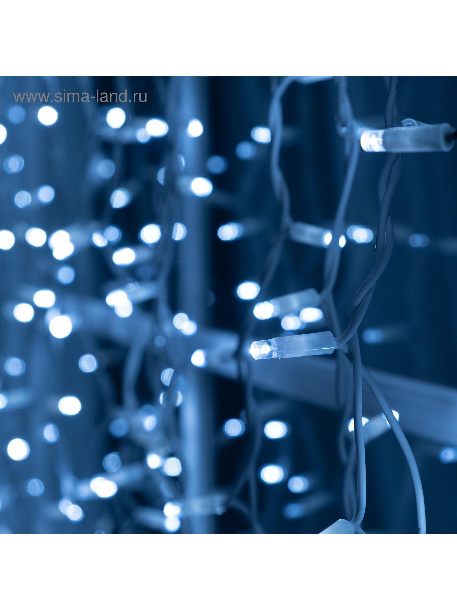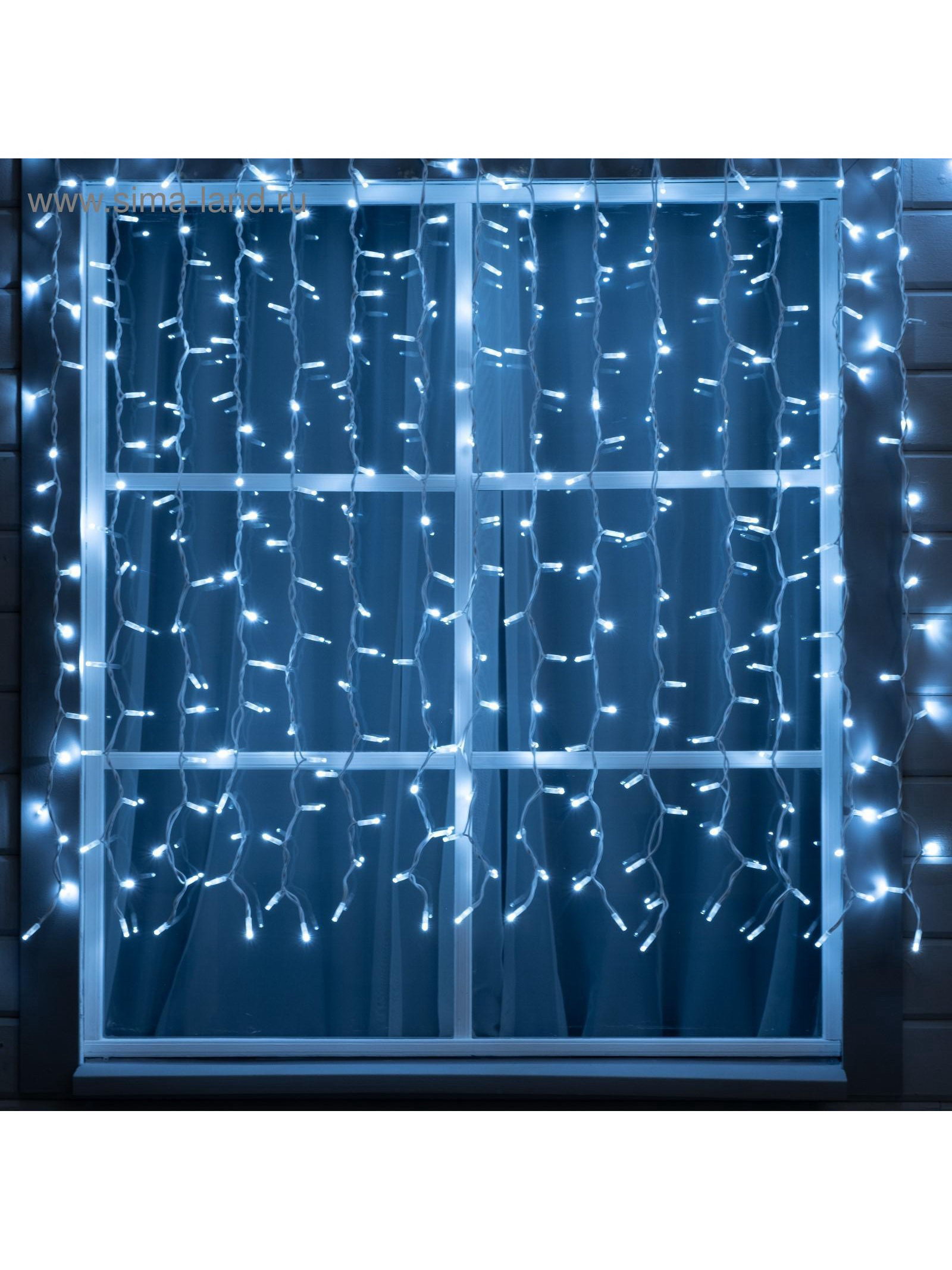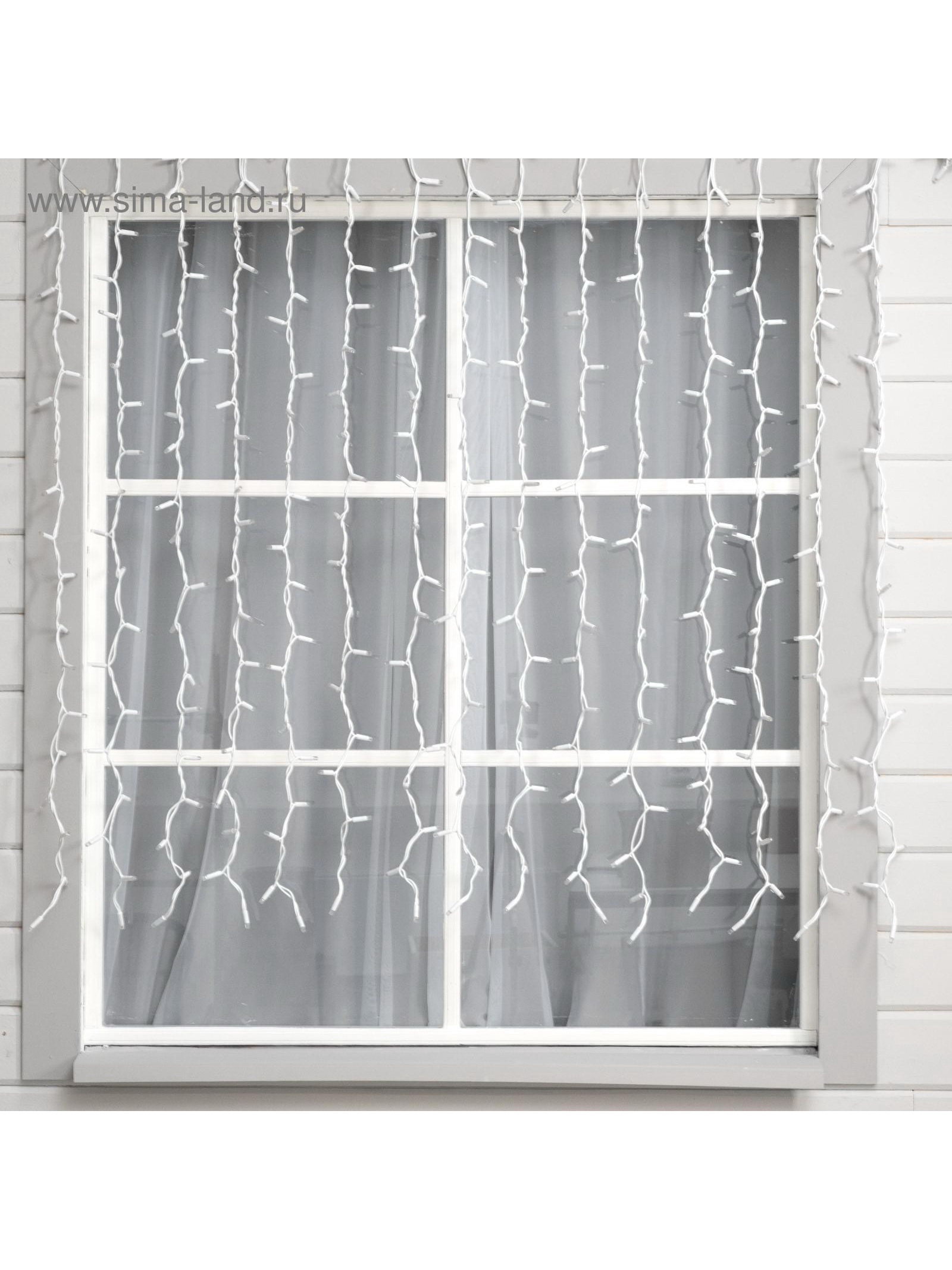 Гирлянда "Занавес" 2 x 1.5 м, IP65, УМС, белая нить каучук, 300 LED, свечение белое, 220 В, 15x25.5x17.5 см., Luazon Lighting, Китай