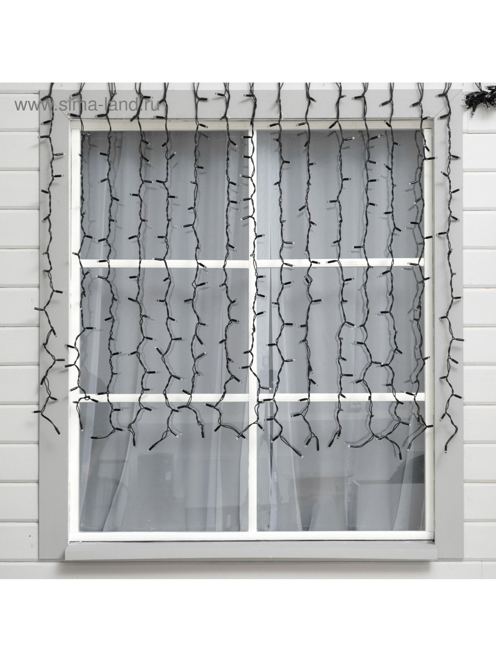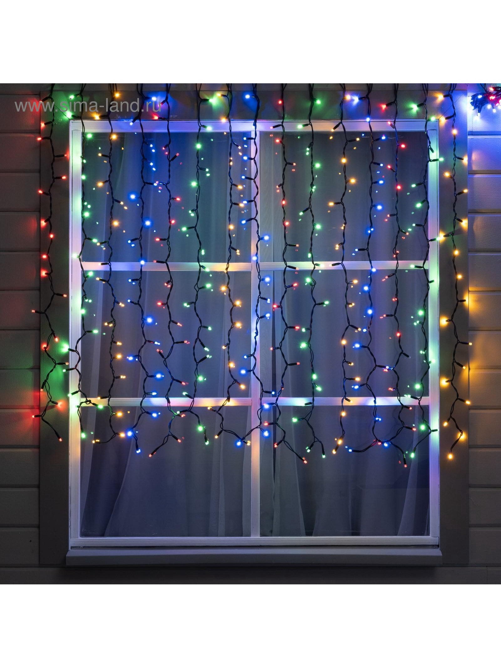 Гирлянда "Занавес" 2 x 1.5 м, IP65, УМС, тёмная нить каучук, 300 LED, свечение мульти, 220 В, 15x25.5x17.5 см., Luazon Lighting, Китай