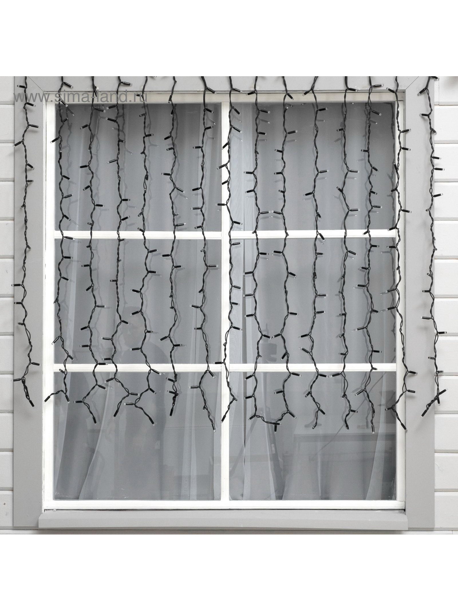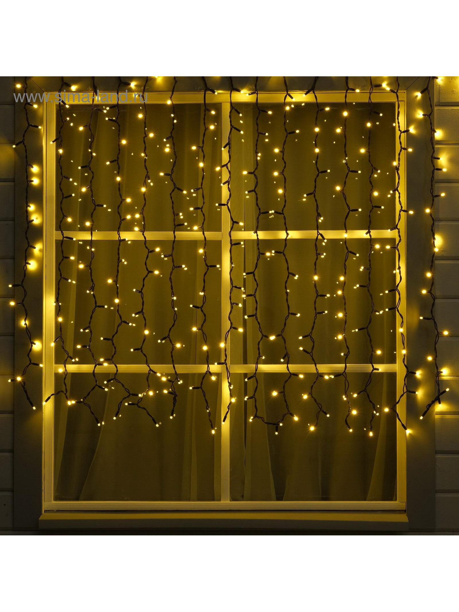Гирлянда "Занавес" 2 x 1.5 м, IP65, УМС, тёмная нить каучук, 300 LED, свечение тёплое белое, 220 В, 15x25.5x17.5 см., Luazon Lighting, Китай