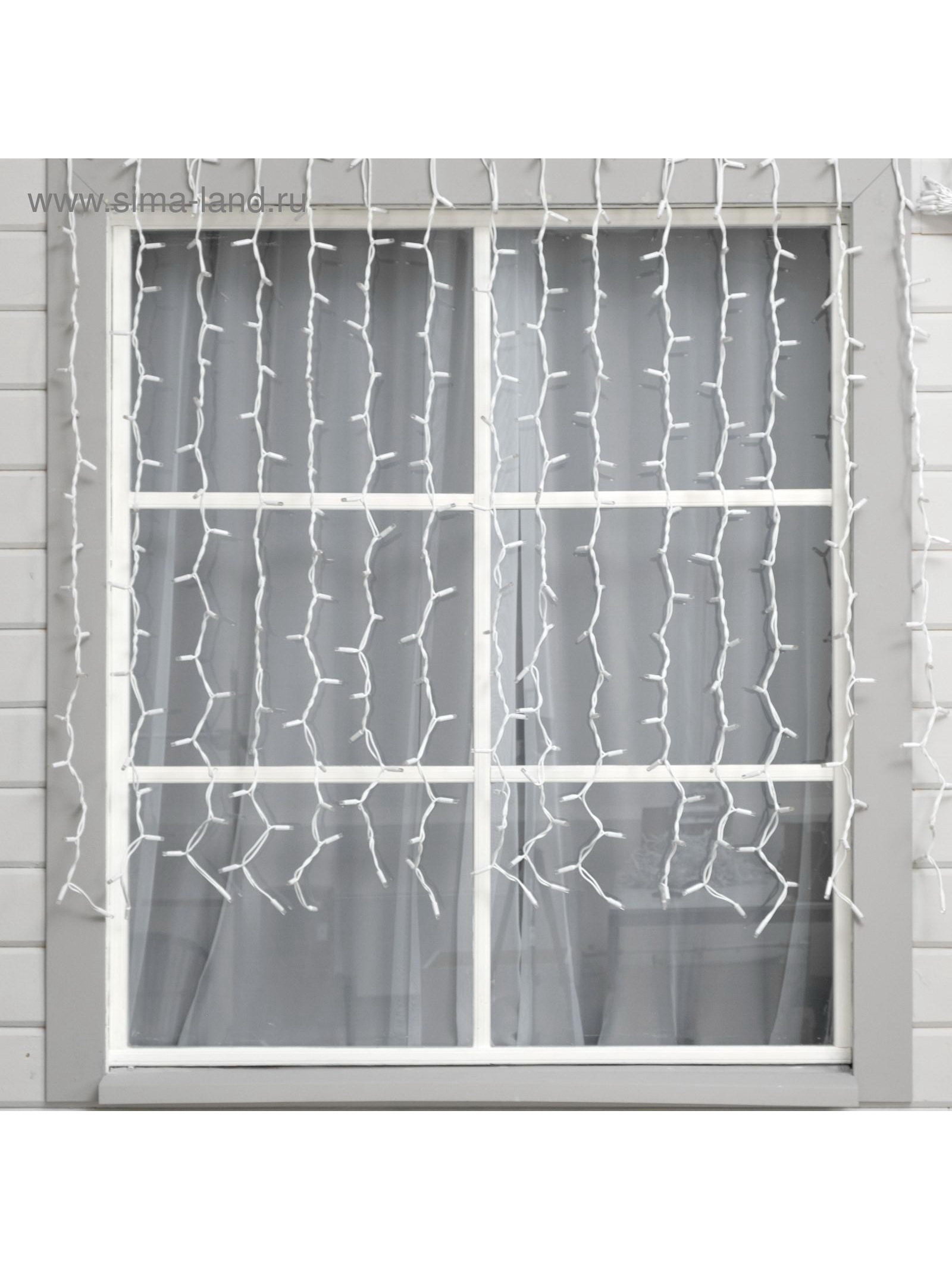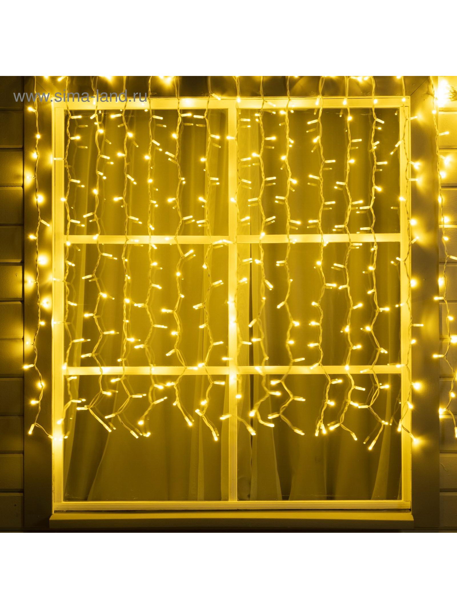 Гирлянда "Занавес" 2 x 1.5 м, IP65, УМС, белая нить каучук, 300 LED, свечение тёплое белое, 220 В, 15x25.5x17.5 см., Luazon Lighting, Китай