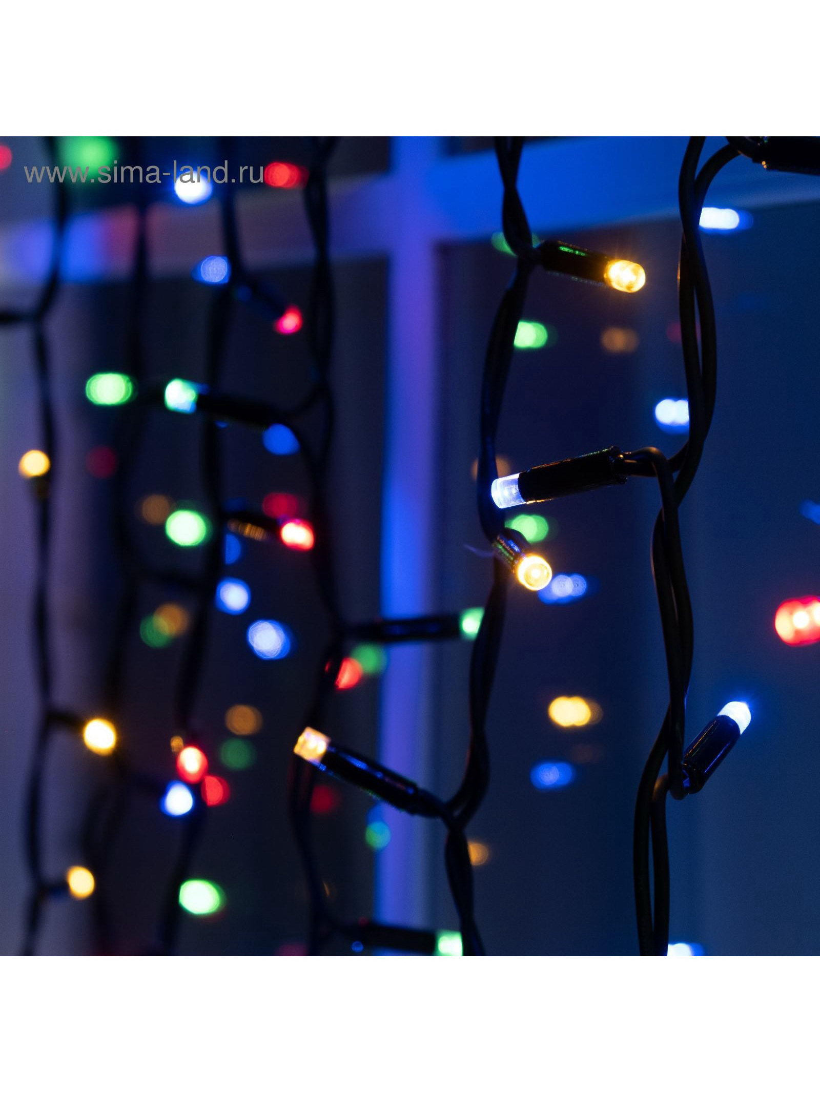 Гирлянда "Занавес" 2 x 3 м, IP65, УМС, тёмная нить каучук, 600 LED, свечение мульти, 220 В, 17x28x19 см., Luazon Lighting, Китай