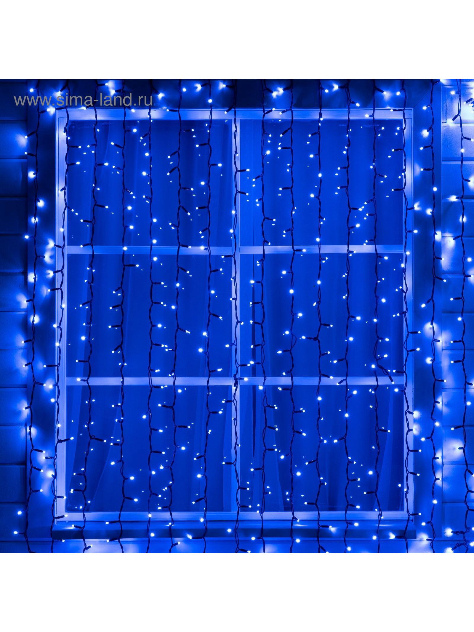 Гирлянда "Занавес" 2 x 3 м, IP65, УМС, тёмная нить каучук, 600 LED, свечение синее, 220 В, 17x28x19 см., Luazon Lighting, Китай