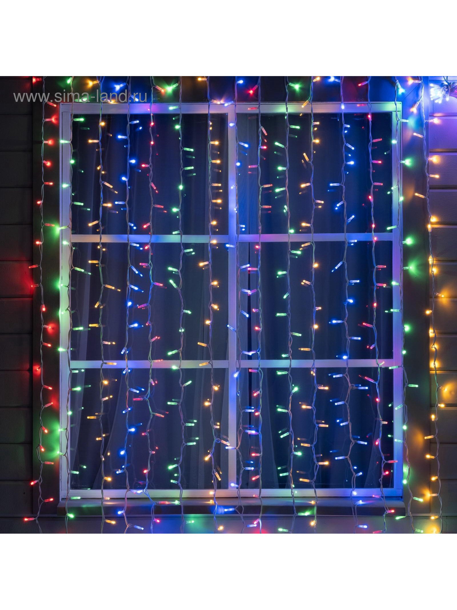 Гирлянда "Занавес" 2 x 3 м, IP65, УМС, белая нить каучук, 600 LED, свечение мульти, 220 В, 17x28x19 см., Luazon Lighting, Китай