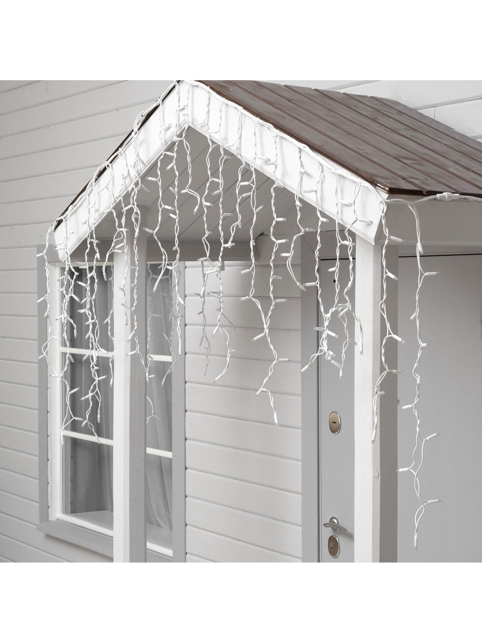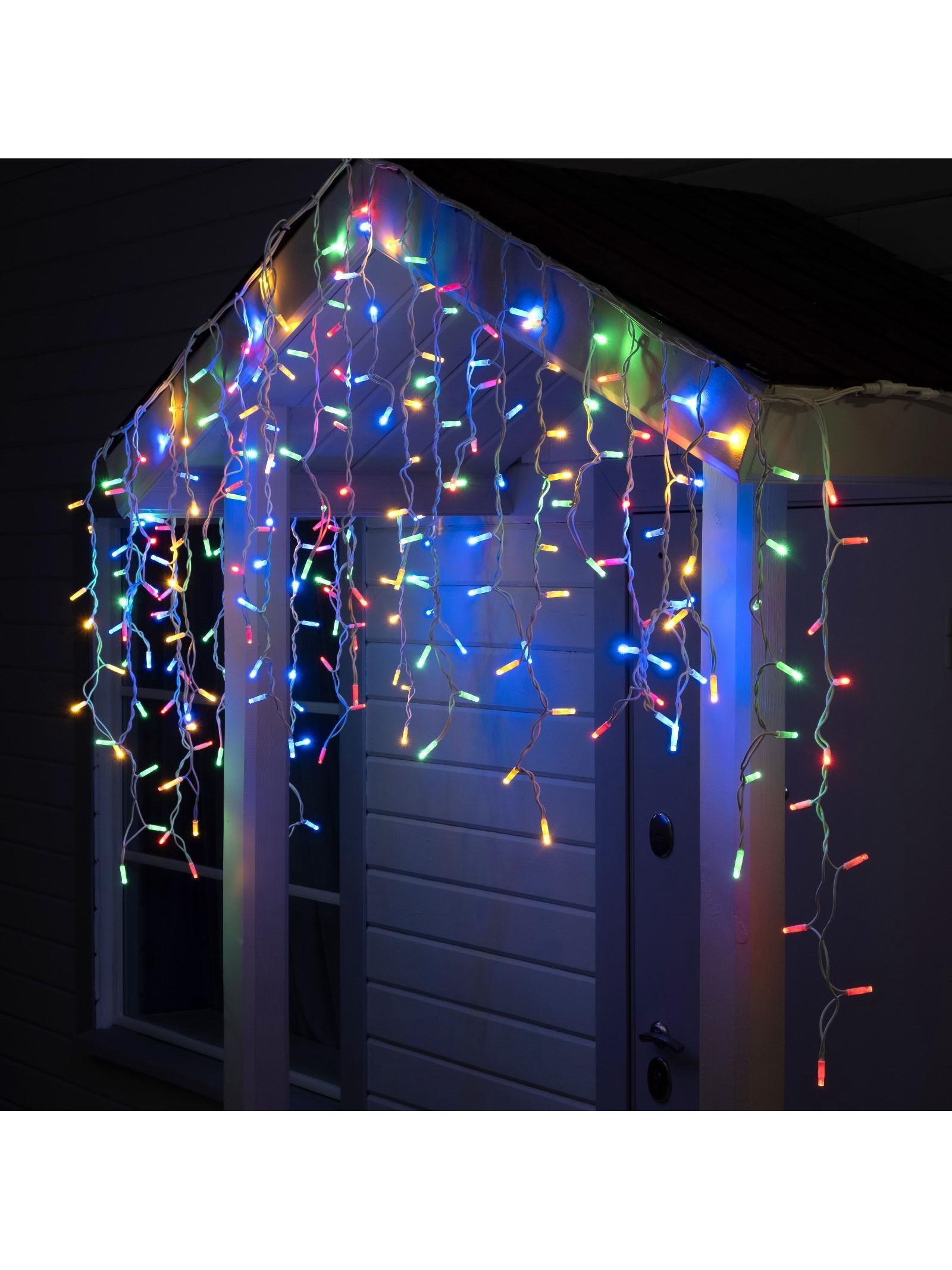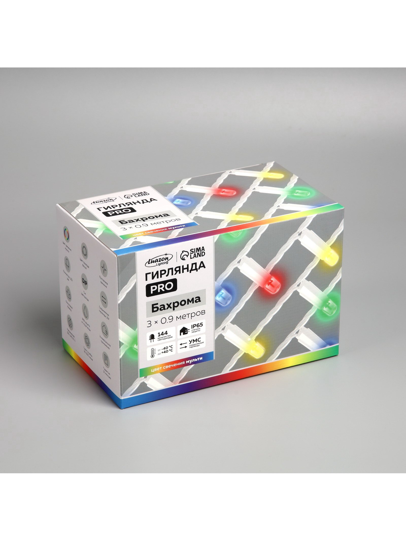 Гирлянда "Бахрома" 3 x 0.9 м, IP65, УМС, белая нить каучук, 144 LED, свечение мульти, 220 В, 13x23x16 см., Luazon Lighting, Китай