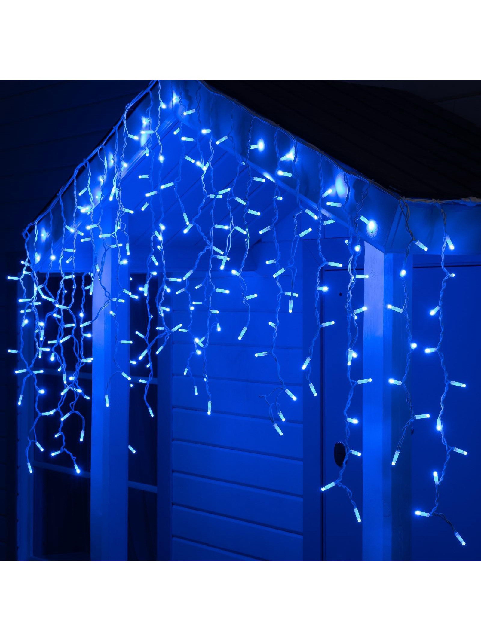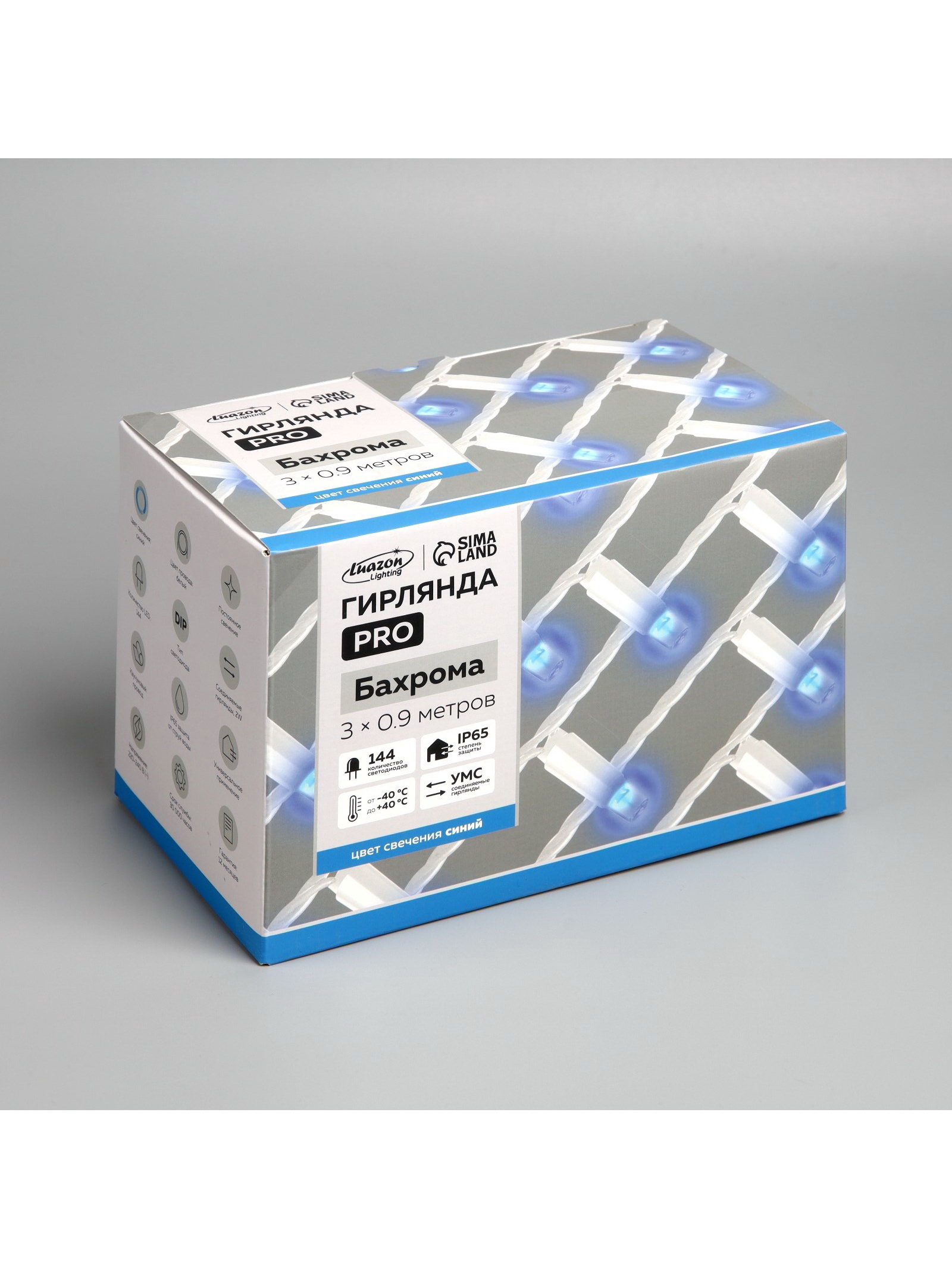 Гирлянда "Бахрома" 3 x 0.9 м, IP65, УМС, белая нить каучук, 144 LED, свечение синее, 220 В, 13x23x16 см., Luazon Lighting, Китай
