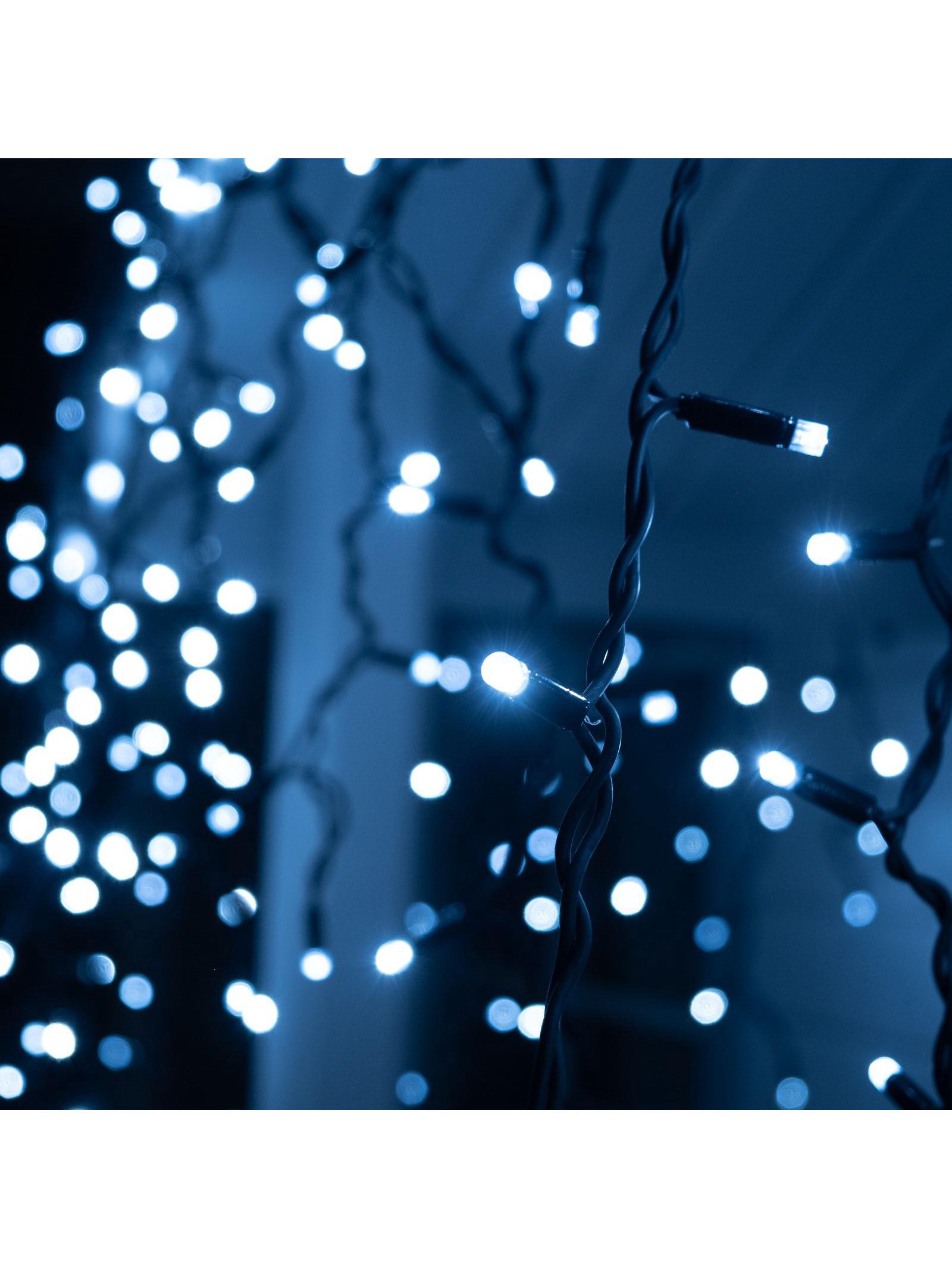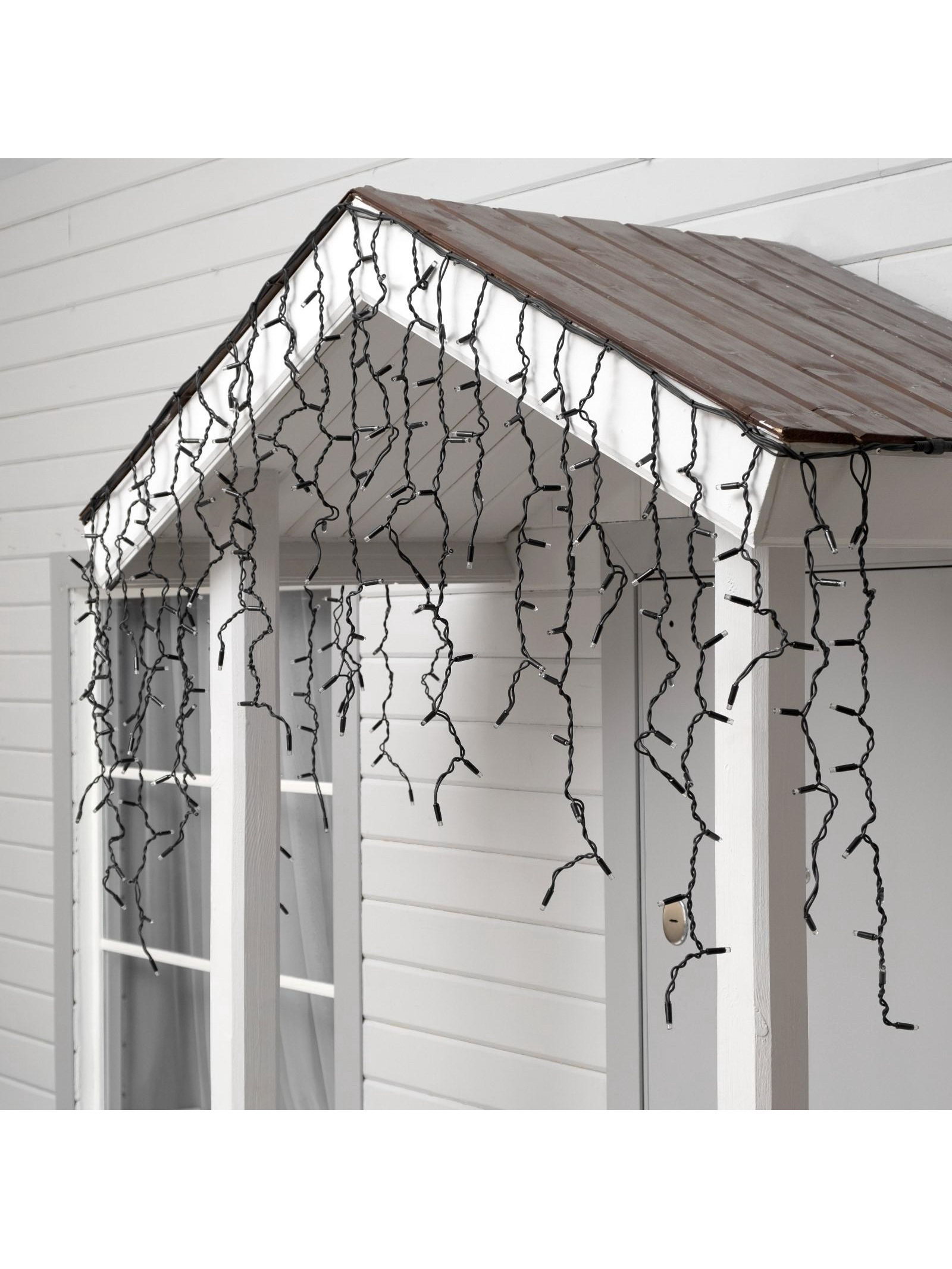 Гирлянда "Бахрома" 3 x 0.9 м, IP65, УМС, тёмная нить каучук, 144 LED, свечение белое, 220 В, 13x23x16 см., Luazon Lighting, Китай