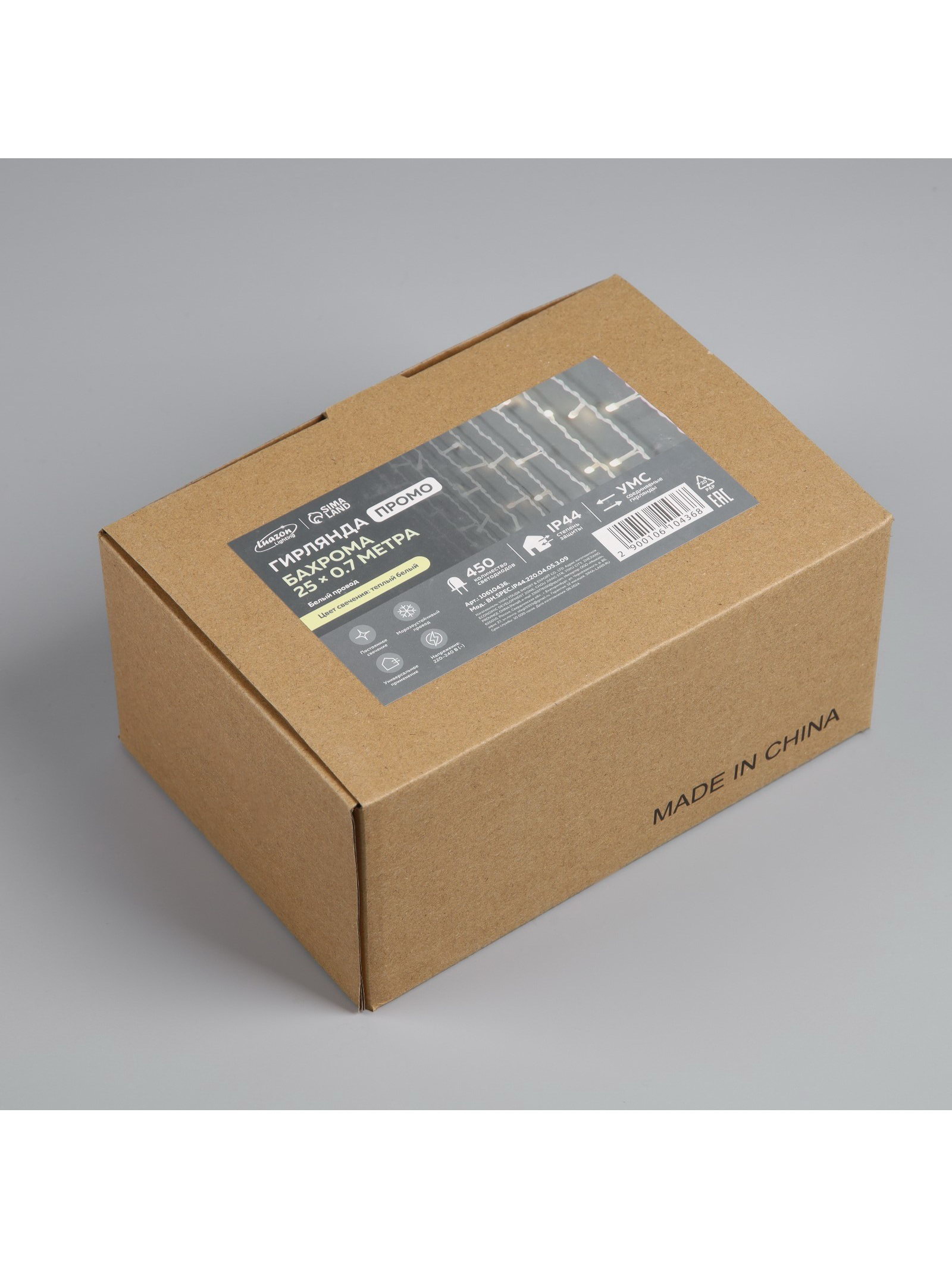 Гирлянда "Бахрома" 25 x 0.7 м, IP44, УМС, белая нить, 450 LED, свечение тёплое белое, 220 В, 19x19x10 см., Luazon Lighting, Китай