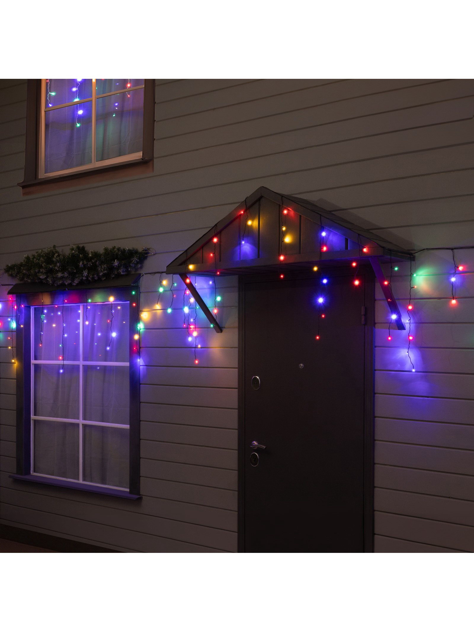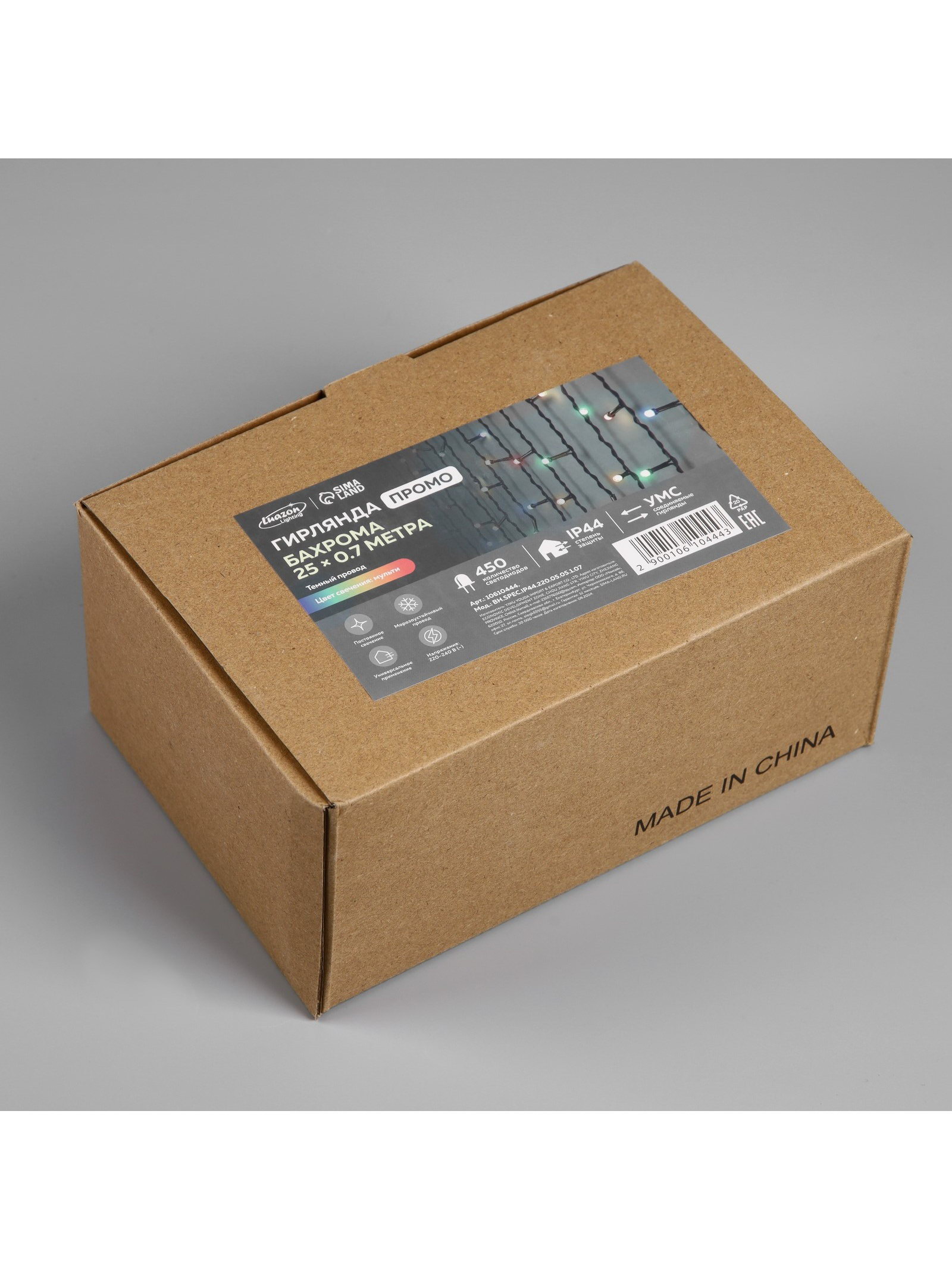 Гирлянда "Бахрома" 25 x 0.7 м, IP44, УМС, тёмная нить, 450 LED, свечение мульти, 220 В, 19x19x10 см., Luazon Lighting, Китай