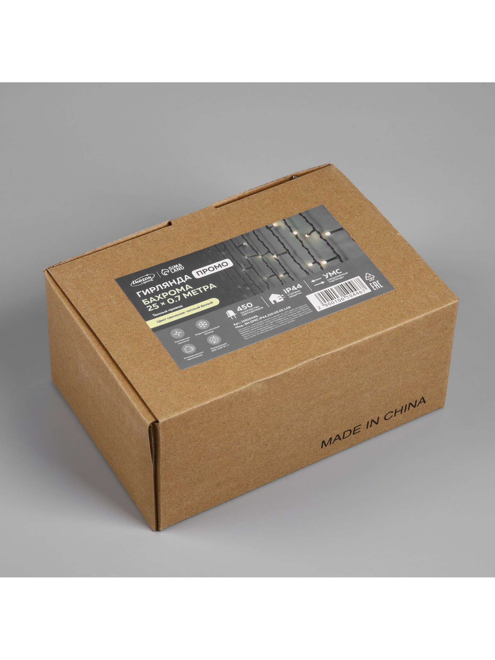 Гирлянда "Бахрома" 25 x 0.7 м, IP44, УМС, тёмная нить, 450 LED, свечение тёплое белое, 220 В, 19x19x10 см., Luazon Lighting, Китай