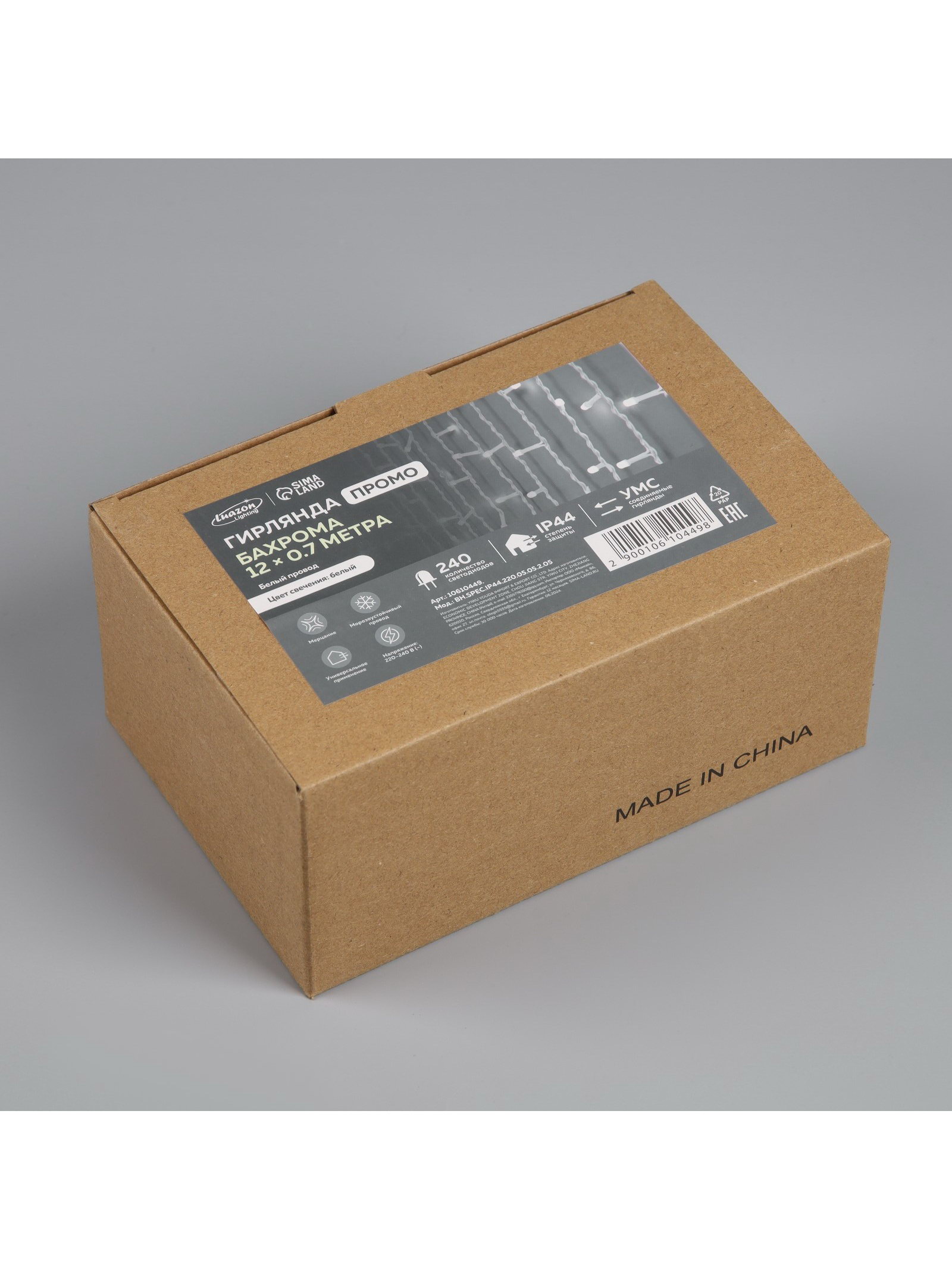 Гирлянда "Бахрома" 12 x 0.7 м, IP44, УМС, белая нить, 240 LED, свечение белое, мерцание, 220 В, 16x16x9 см., Luazon Lighting, Китай