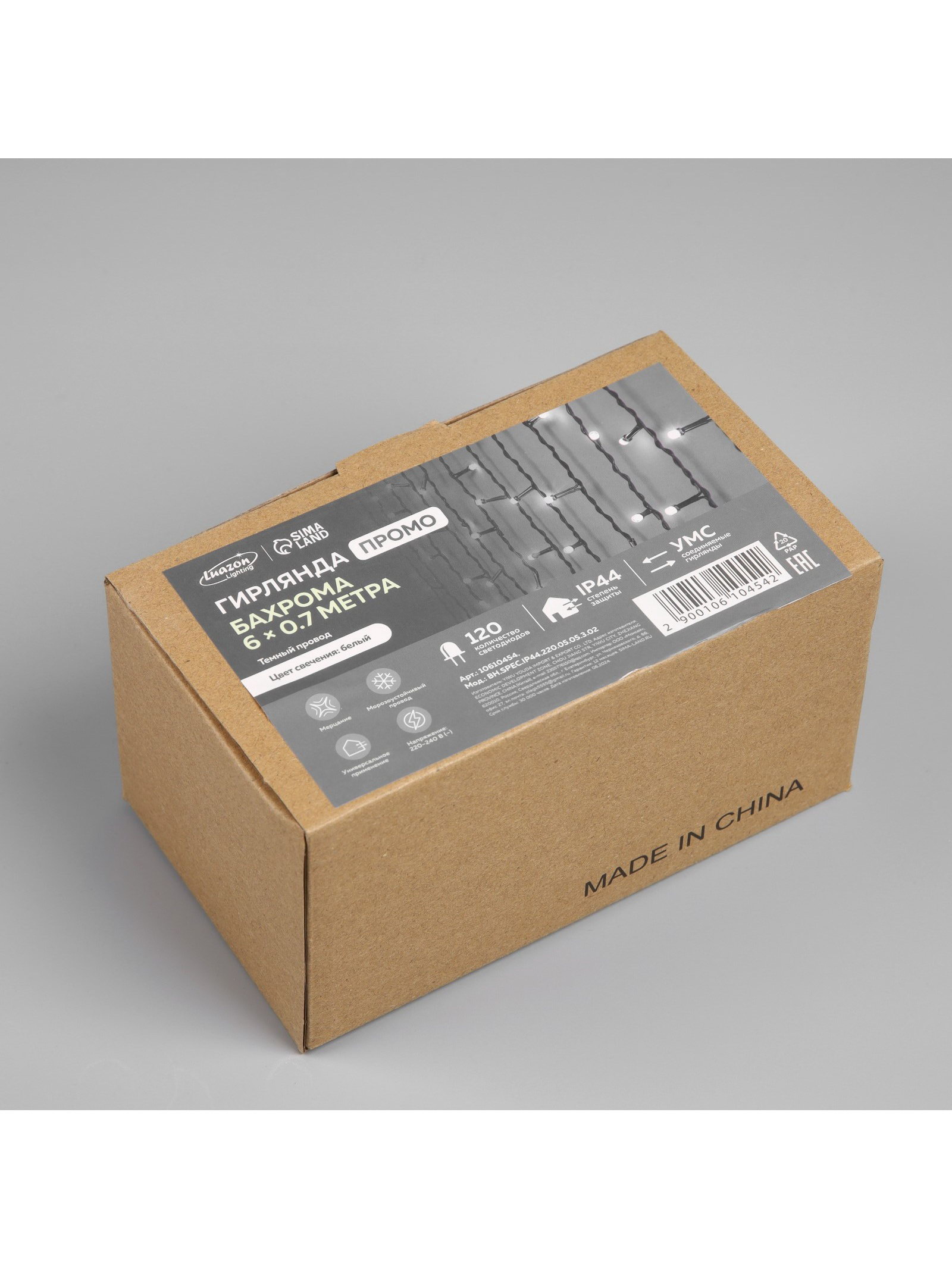 Гирлянда "Бахрома" 6x0.7 м, IP44, УМС, тёмная нить, 120 LED, свечение белое, мерцание, 220 В, 13x13x8 см., Luazon Lighting, Китай