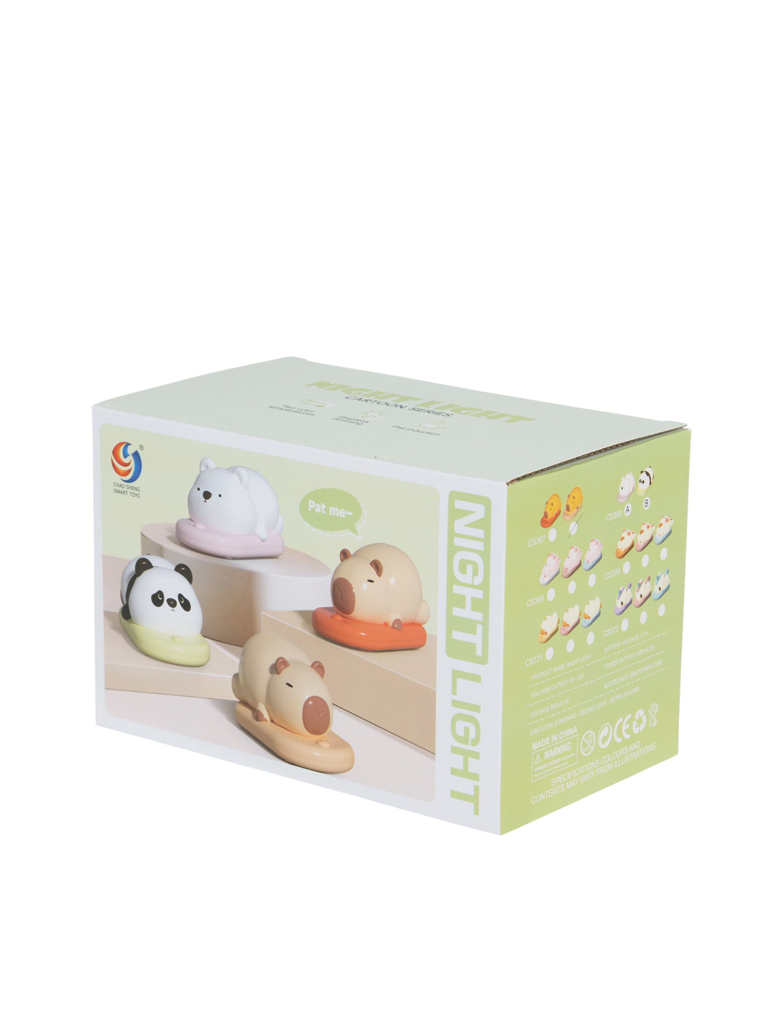 Стиль: Декоративные, Светодиодные Размер упаковки: 10 x 11.2 x 17 см. tnved: 9405210000 Управление светильником: С выключателем на корпусе Цоколь: Встроенные LED Вид установки: Настольный Цвет основания: Бежевый Тип питания: От аккумулятора Батарейки в комплекте: Нет Тематика праздника: Универсальная тематика Мягкий ночник в форме капибары, уютно устроившейся на коврике, создаёт тёплый и спокойный свет в детской или на прикроватной тумбочке. LED-модуль мощностью примерно 3? Вт обеспечивает приятное рассеянное освещение, которое не раздражает глаза и создаёт атмосферу безопасности. Он питается от встроенного аккумулятора и заряжается через USB (5?V), что делает его переносным и удобным: его можно легко брать с собой, выключать и заряжать без проводов, и, при этом, не зависеть от розетки. | ||