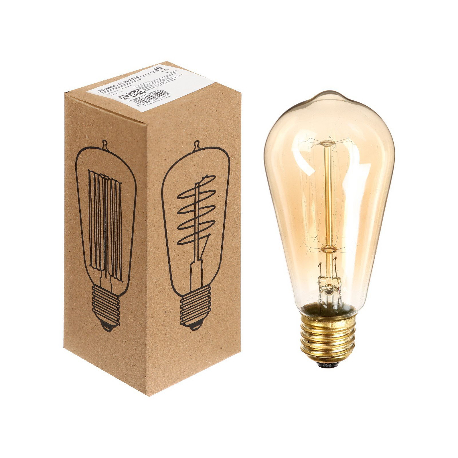 Лампа накаливания винтажная "Ретро", ST58, 60 Вт, Е27, 230 В, 140х58 мм, теплый белый, 5.8x5.8x14 см., Китай