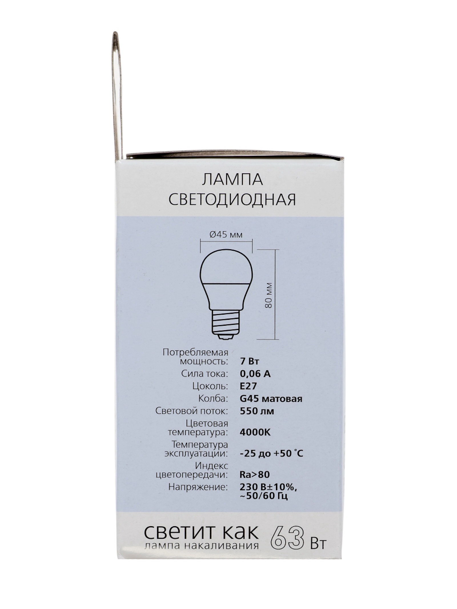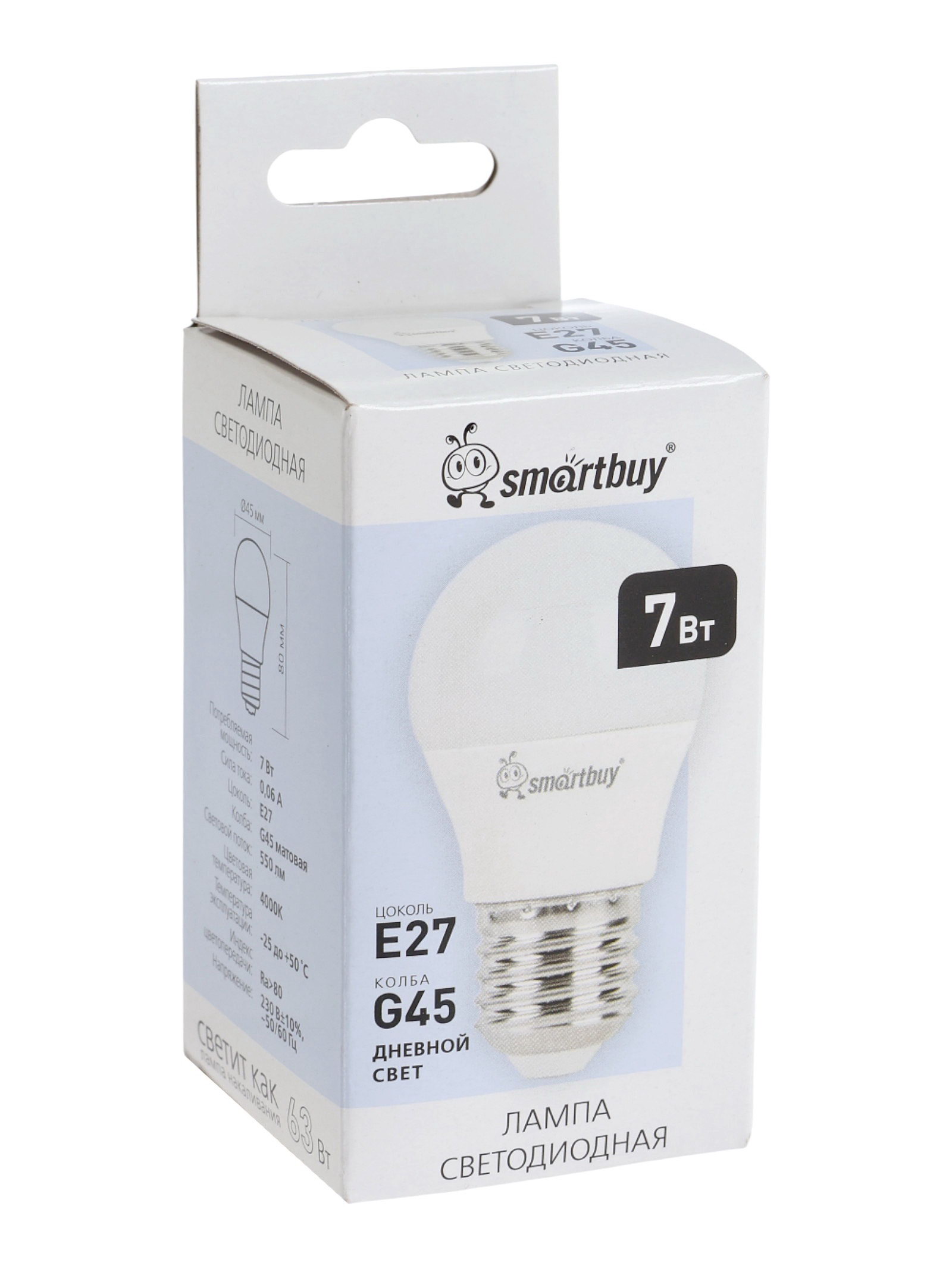 Лампа светодиодная E27, G45, 7 Вт, 4000 К, дневной белый свет, Smartbuy, Китай