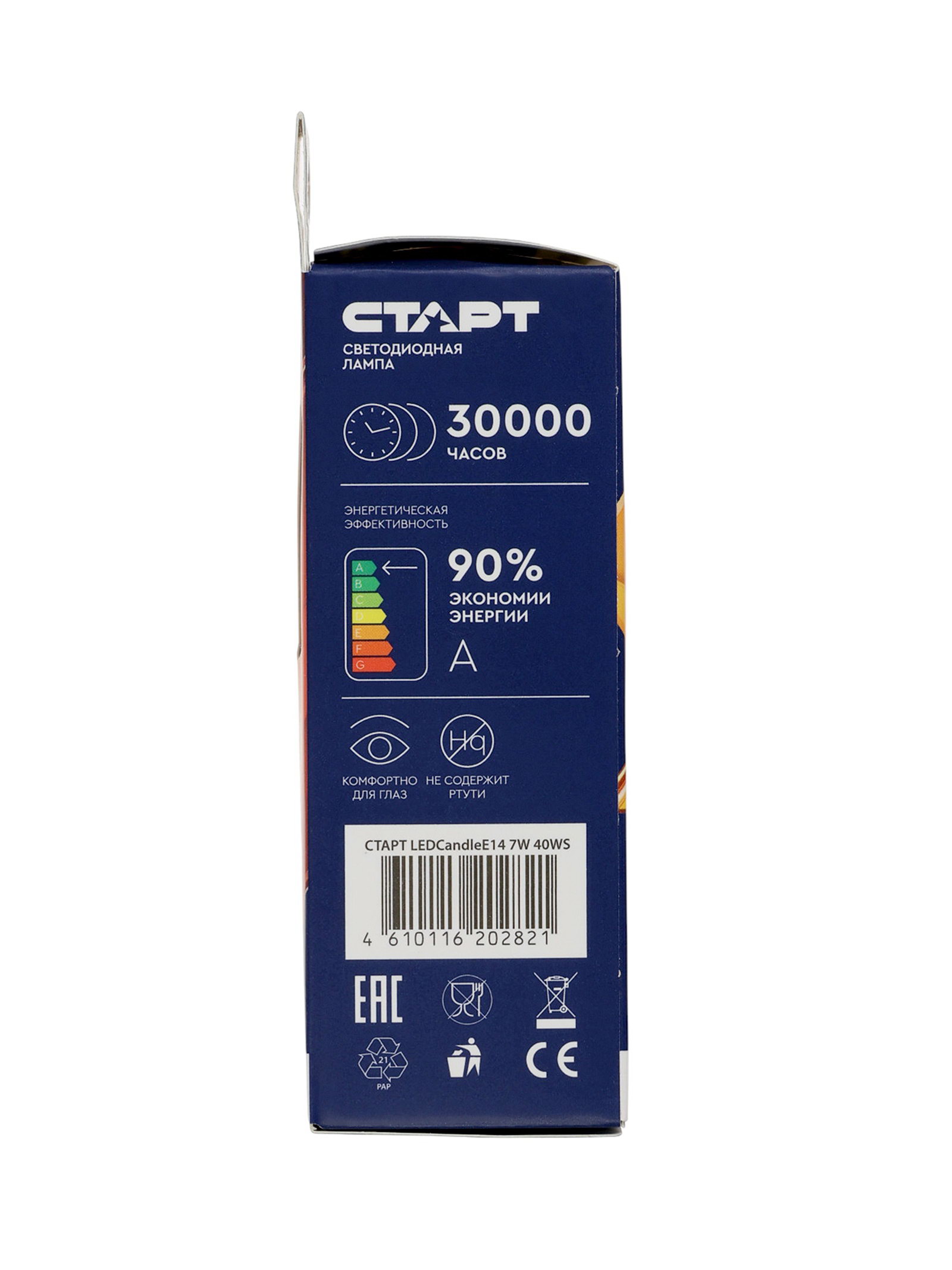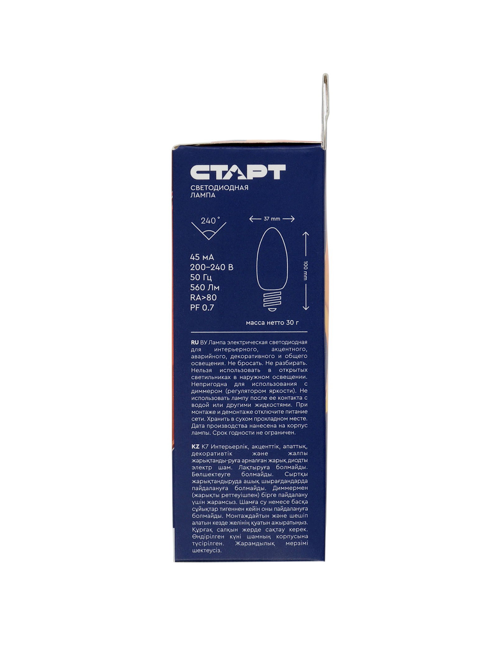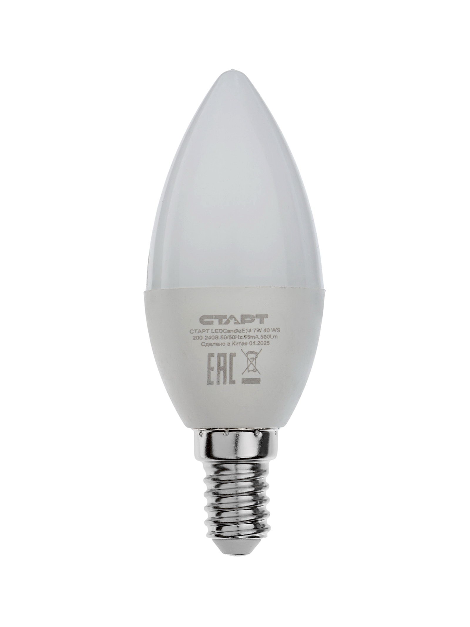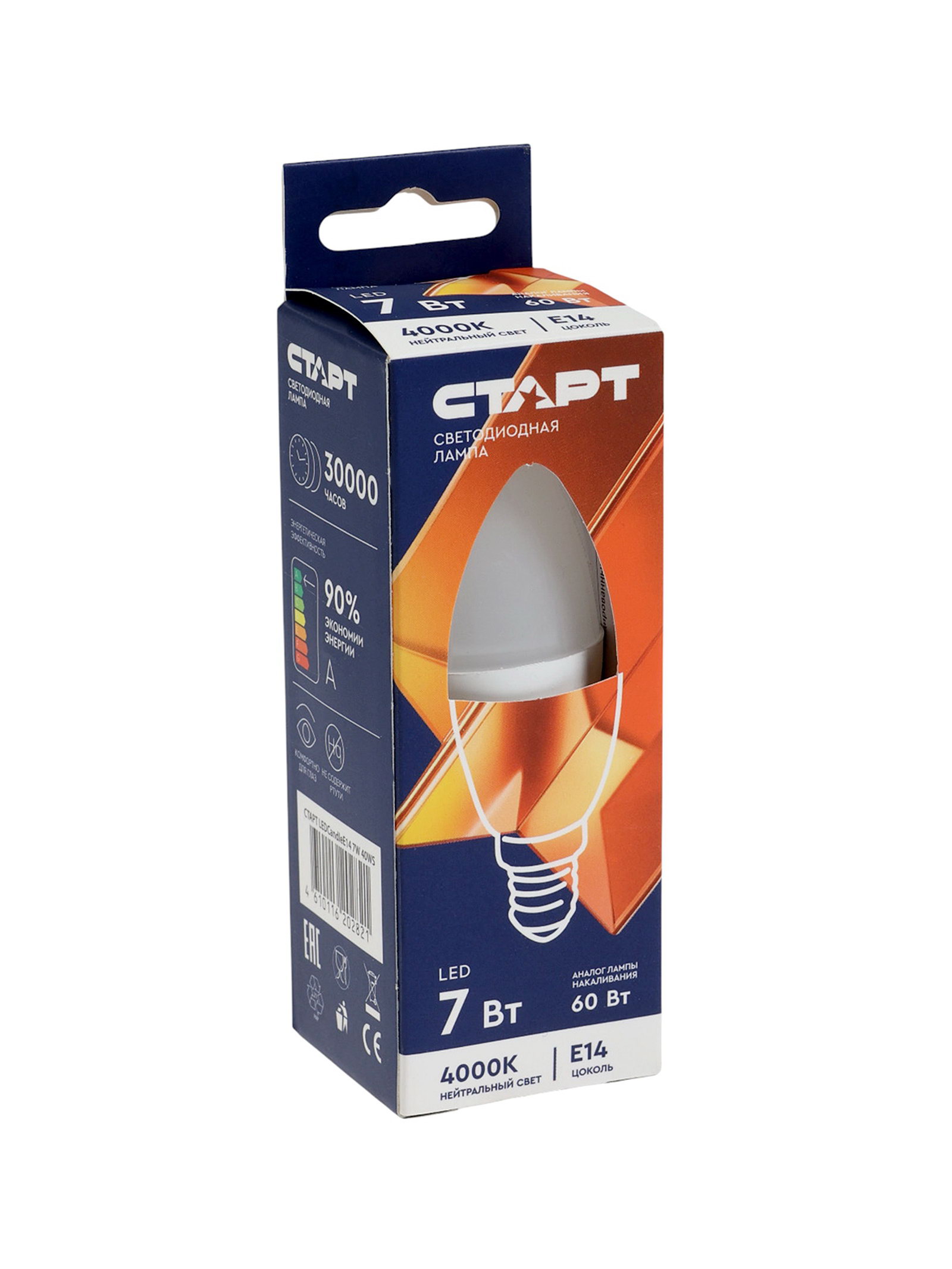 Лампа светодиодная 7 Вт, Е14, С37, 4000К, 560 Лм, свечение нейтральное белое, СТАРТ, Китай