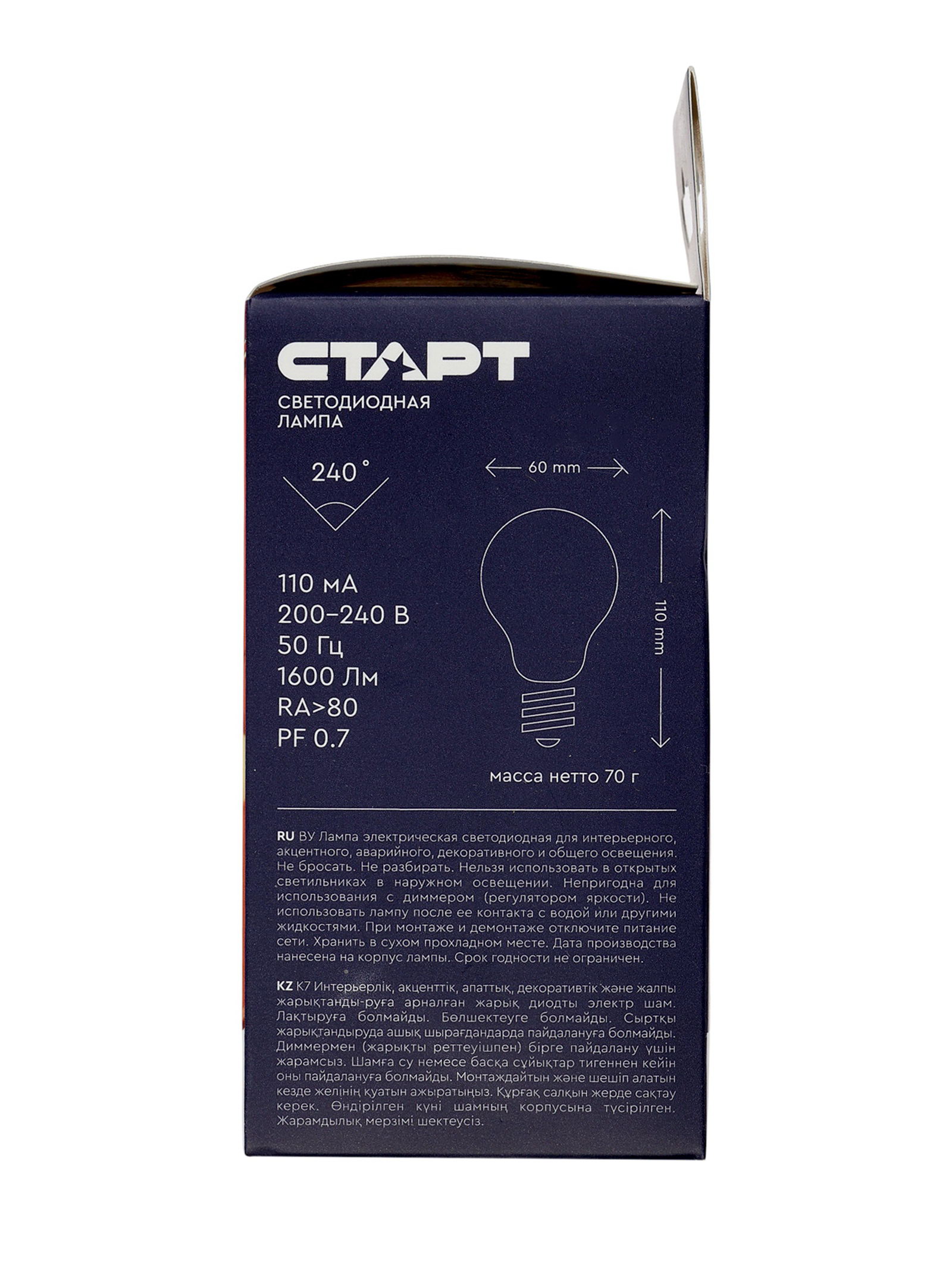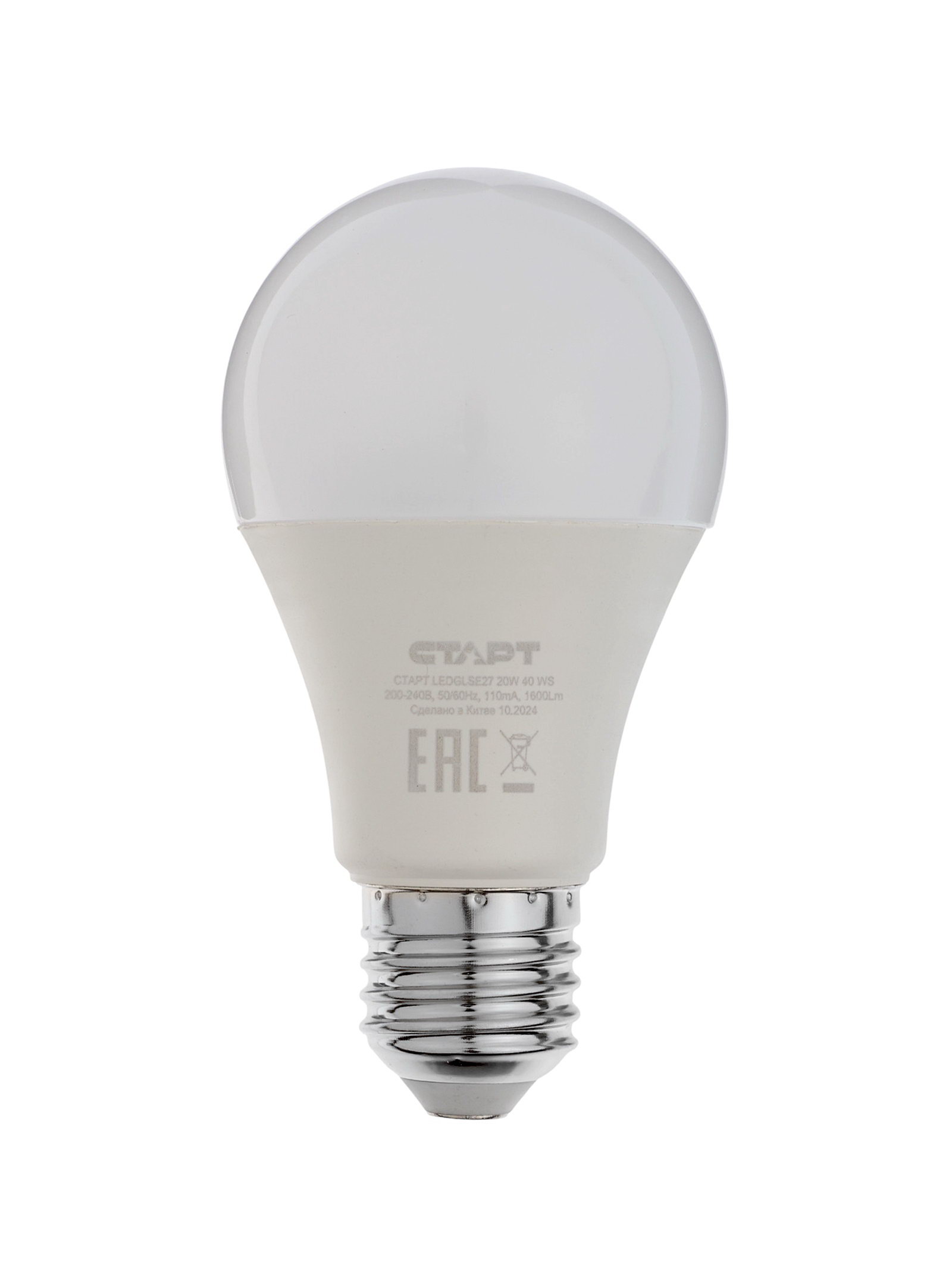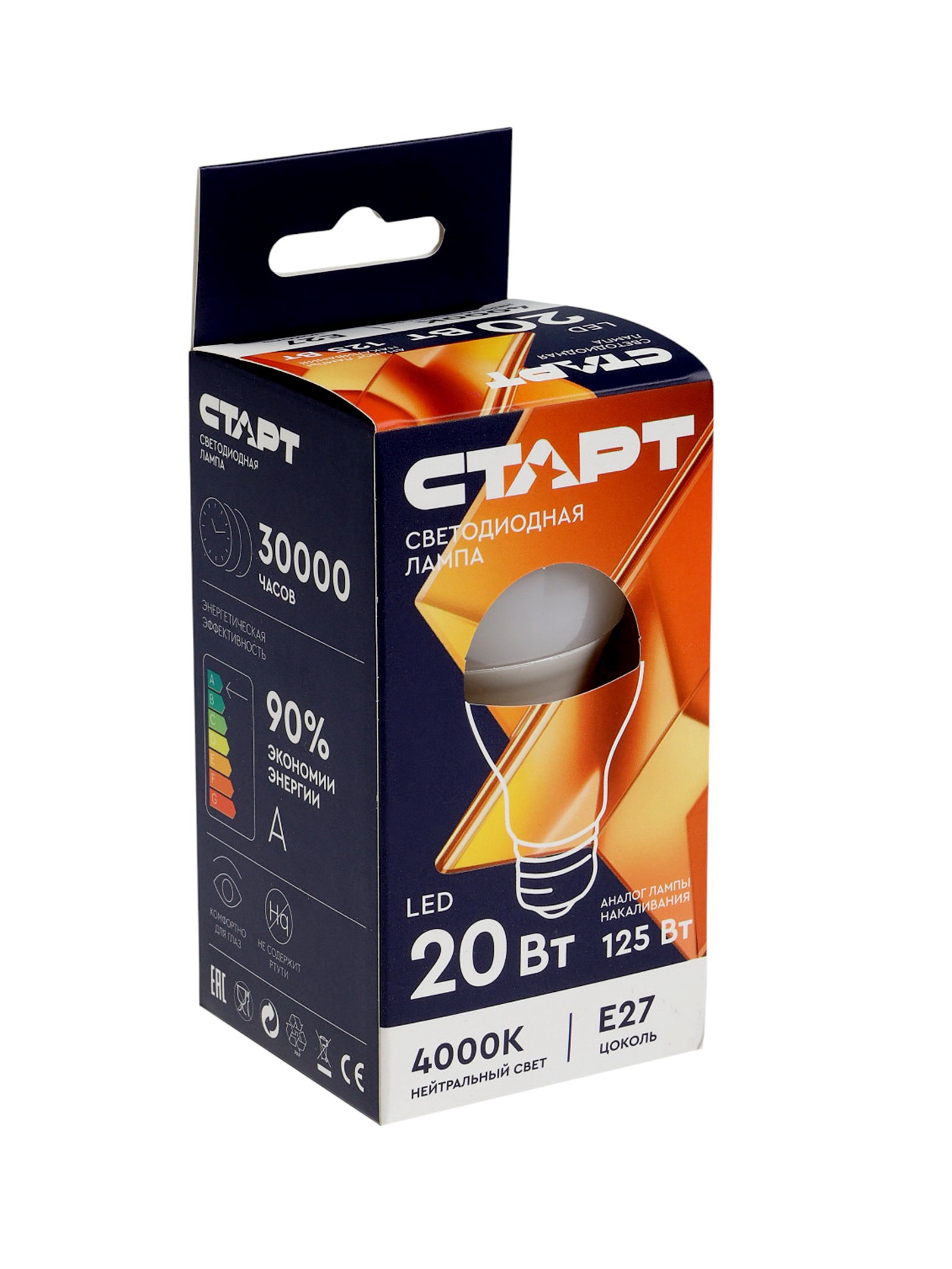 Лампа светодиодная 20 Вт, Е27, А60, 4000К, 1600 Лм, свечение нейтральное белое, СТАРТ, Китай