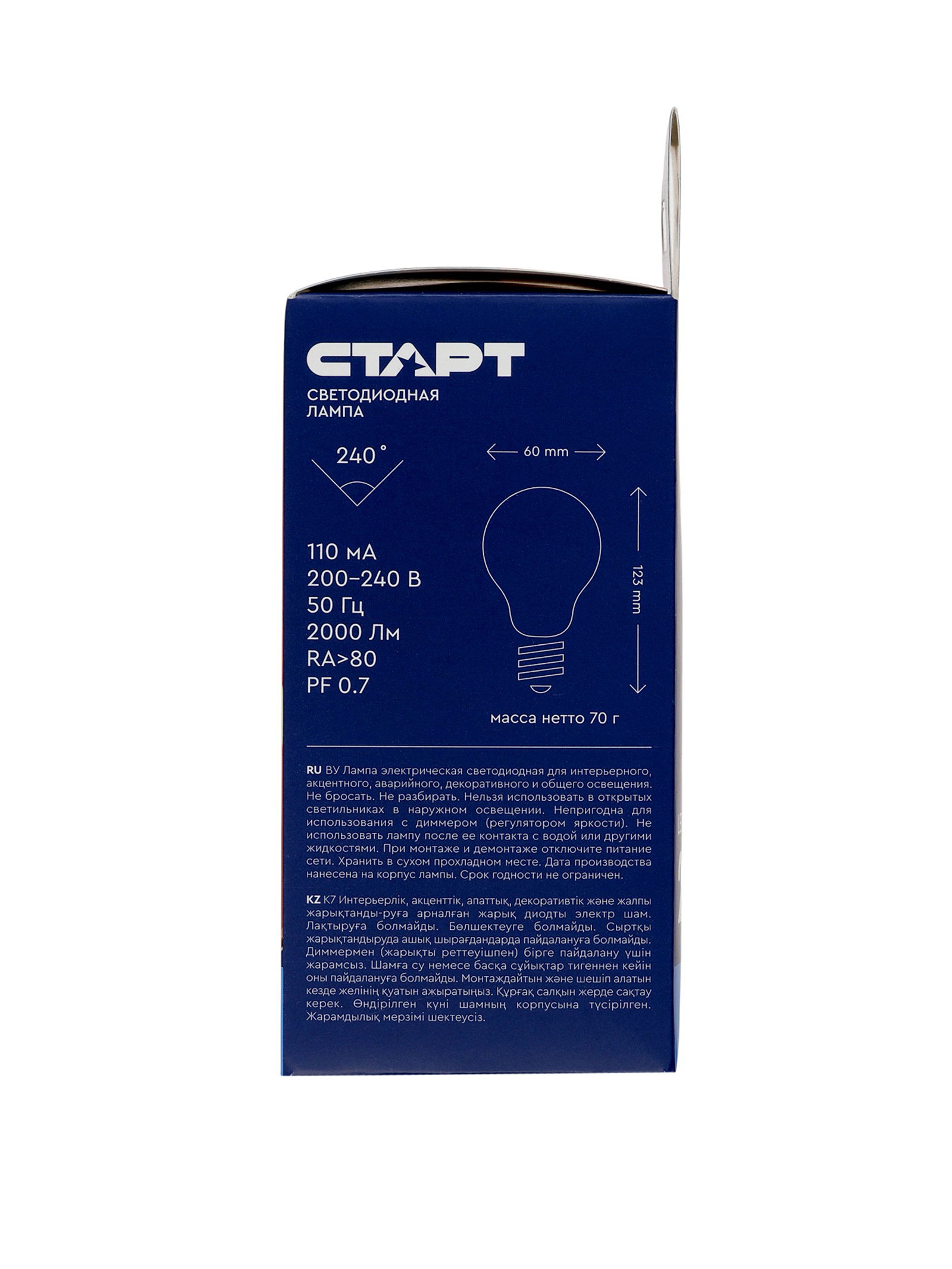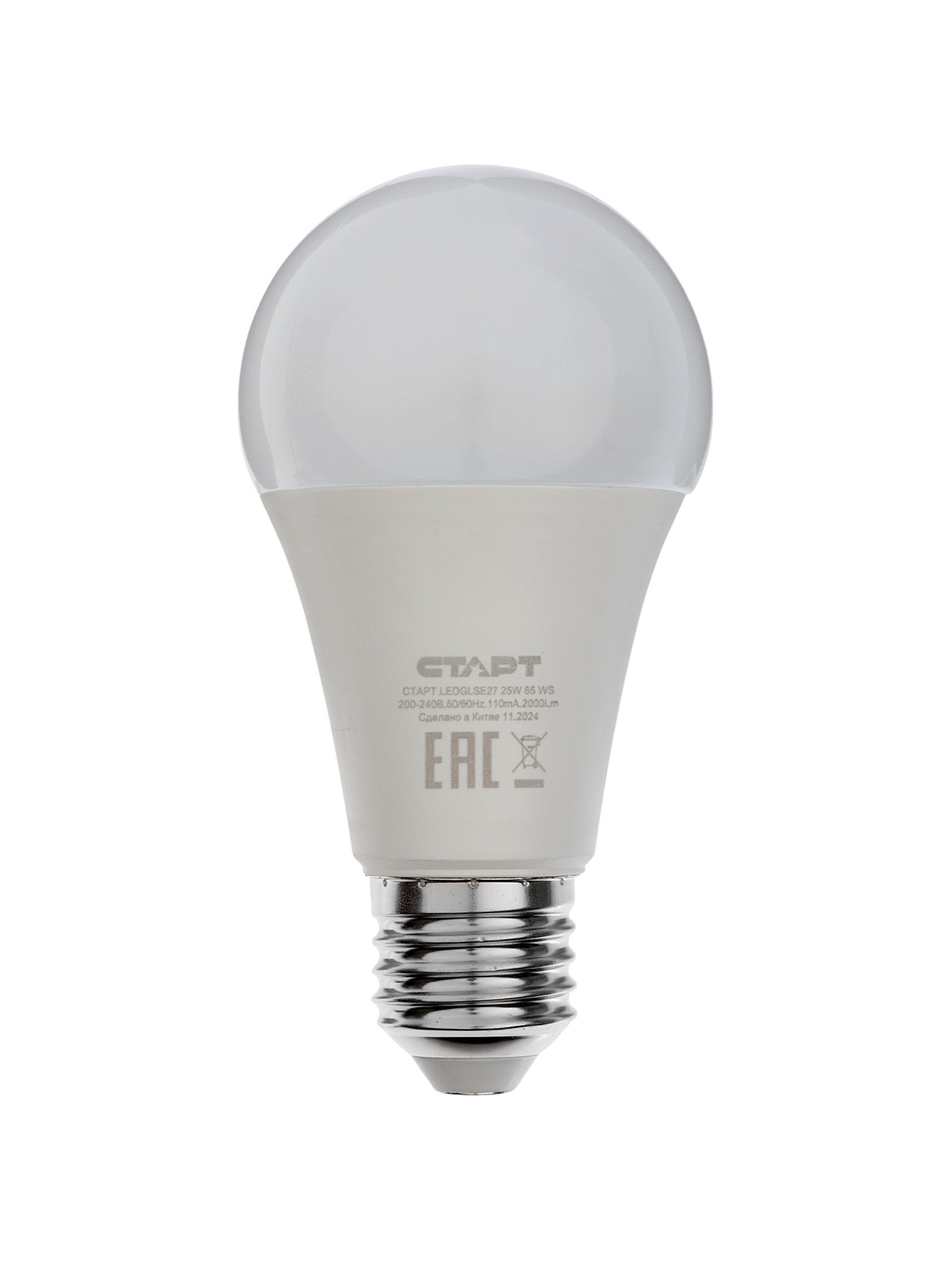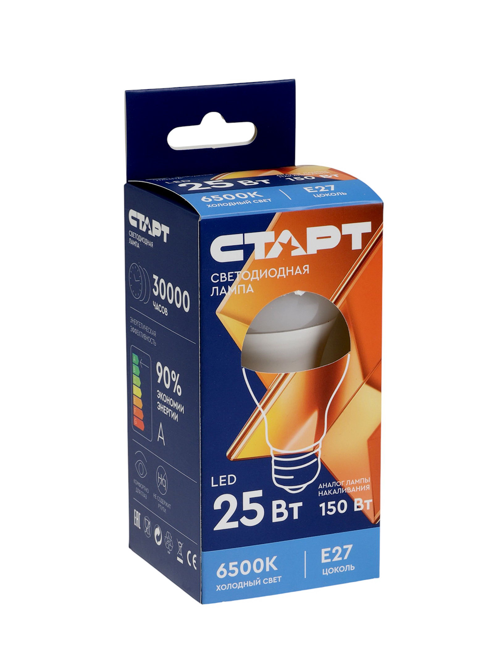 Лампа светодиодная 25 Вт, Е27, А60, 6500К, 2000 Лм, свечение холодное белое, СТАРТ, Китай
