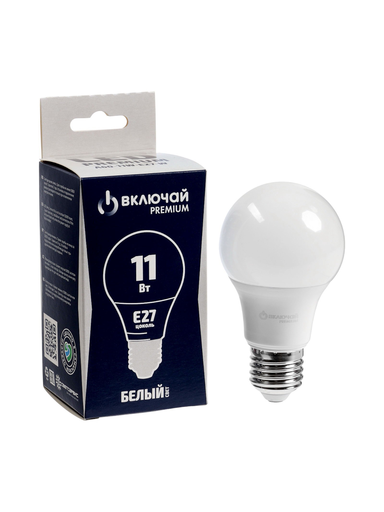 Лампа светодиодная Включай, А60, 11 Вт, E27, 1045 лм, 4000K, IP20, свечение нейтральное белое, Россия