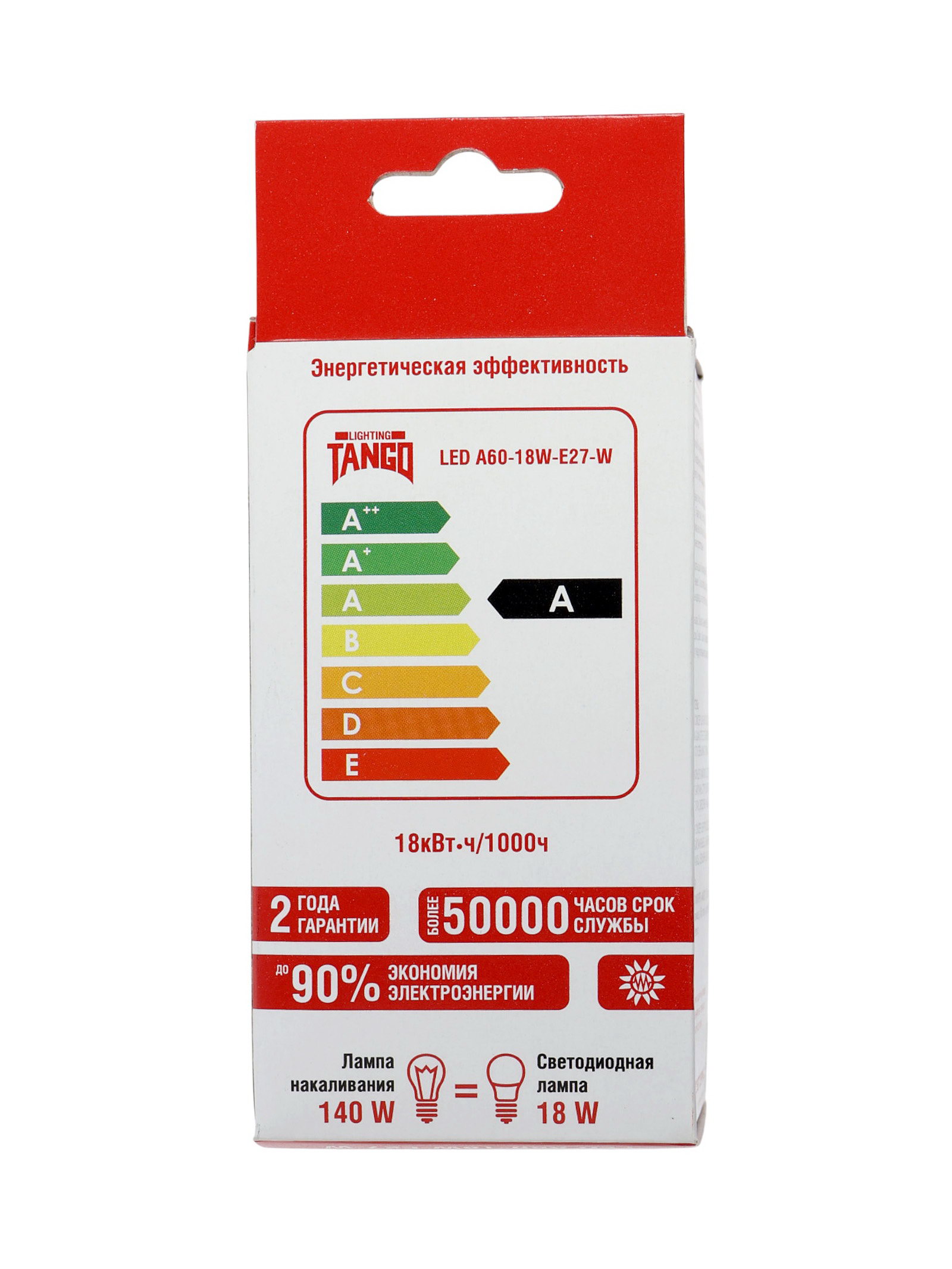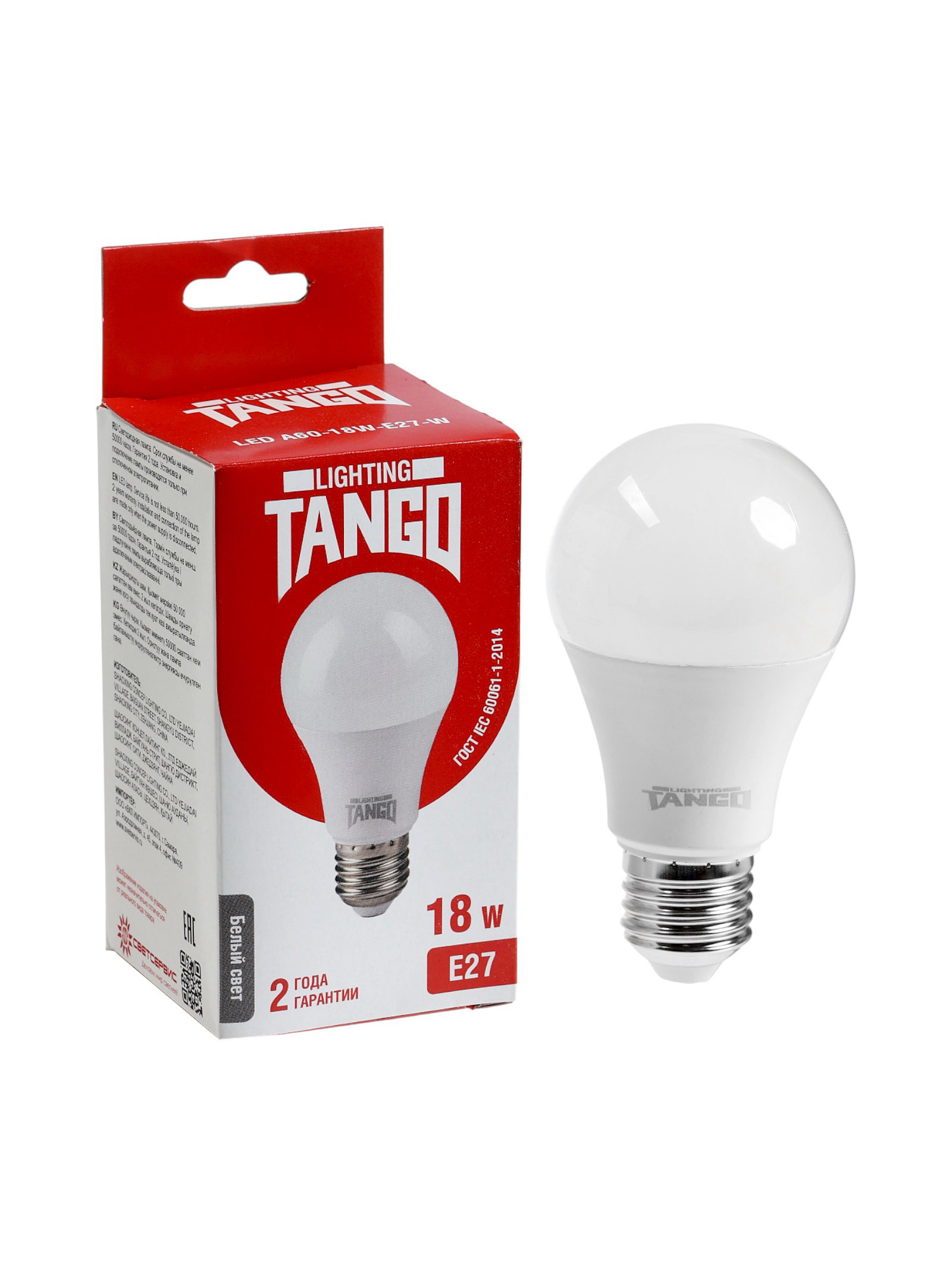 Лампа светодиодная TANGO, А60, 18 Вт, E27, 1710 лм, 4000K, IP20, свечение нейтральное белое, Китай