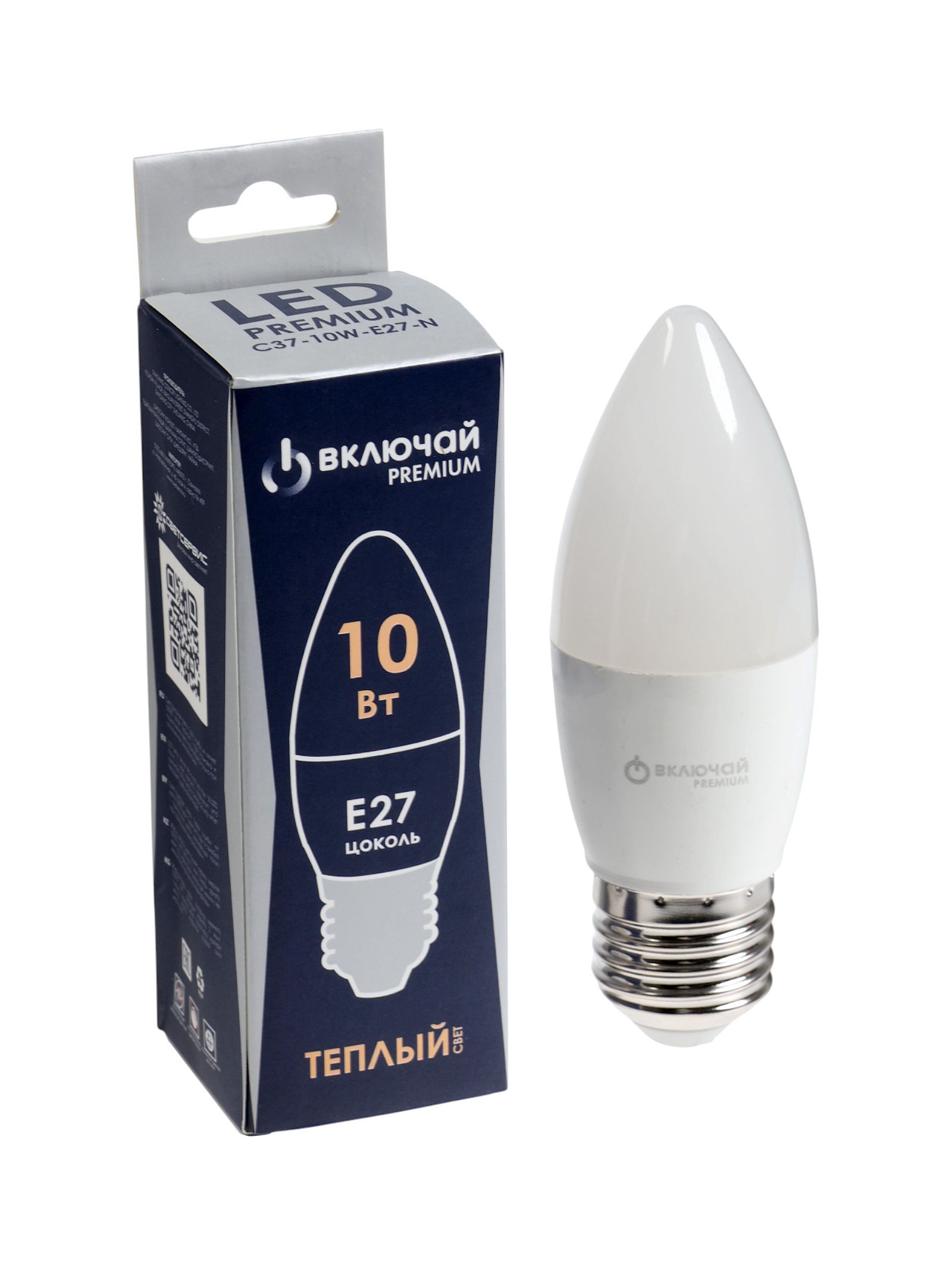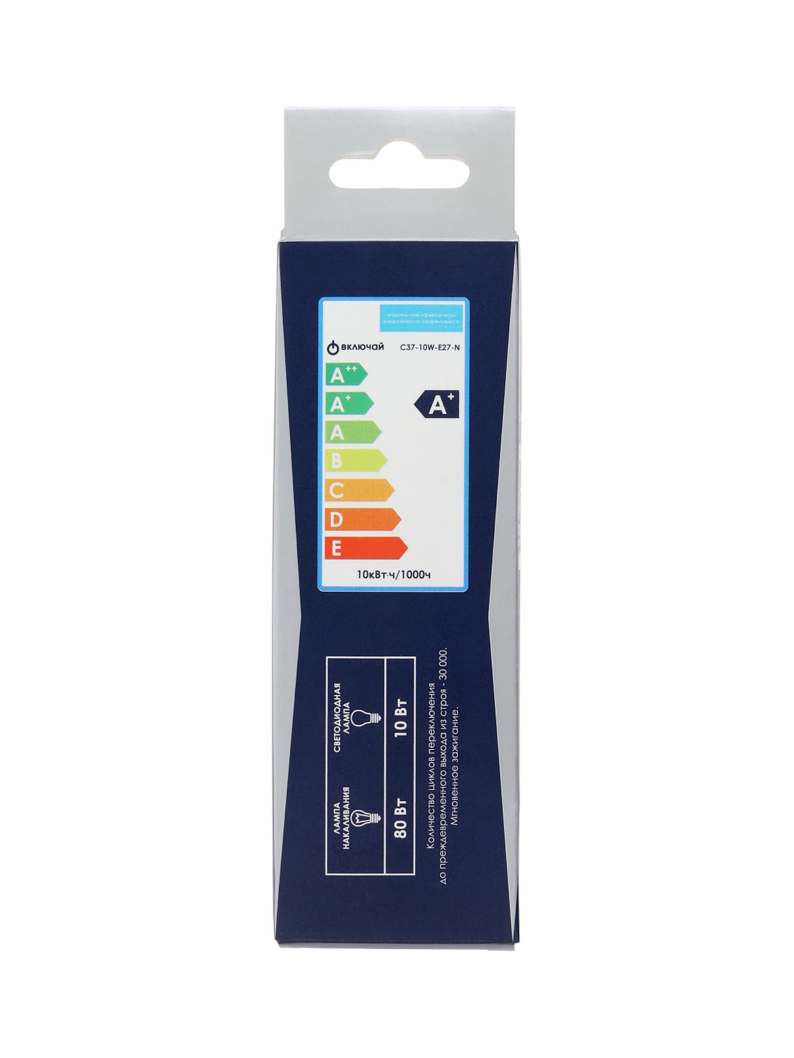 Лампа светодиодная Включай, С37, 10 Вт, E27, 950 лм, 3000K, IP20, свечение тёплое белое, Китай