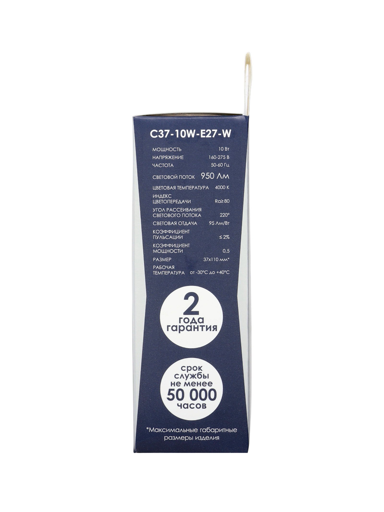 Размер упаковки: 3.7 x 3.5 x 13 см. tnved: 8539520000 Гарантийный срок, мес.: 12 Температурное ограничение: Нет Цветовая температура: 4000К Форма лампы: Свеча Световой поток, лм: 950 Класс энергоэффективности: A+ Мощность, Вт: 10 Цвет свечения: Нейтрально-белый Индекс цветопередачи: RA > 80 Цоколь: E27 Напряжение, В: 220 Диммируемая: Нет | ||