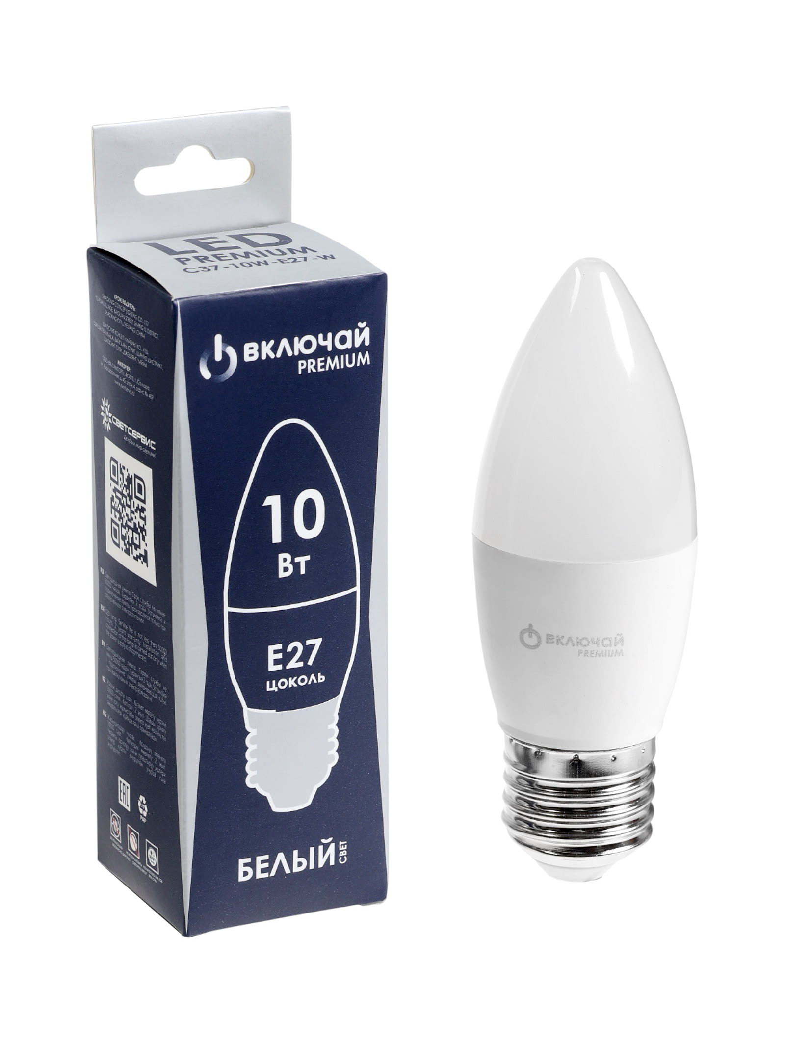 Лампа светодиодная Включай, С37, 10 Вт, E27, 950 лм, 4000K, IP20, свечение нейтральное белое, Китай
