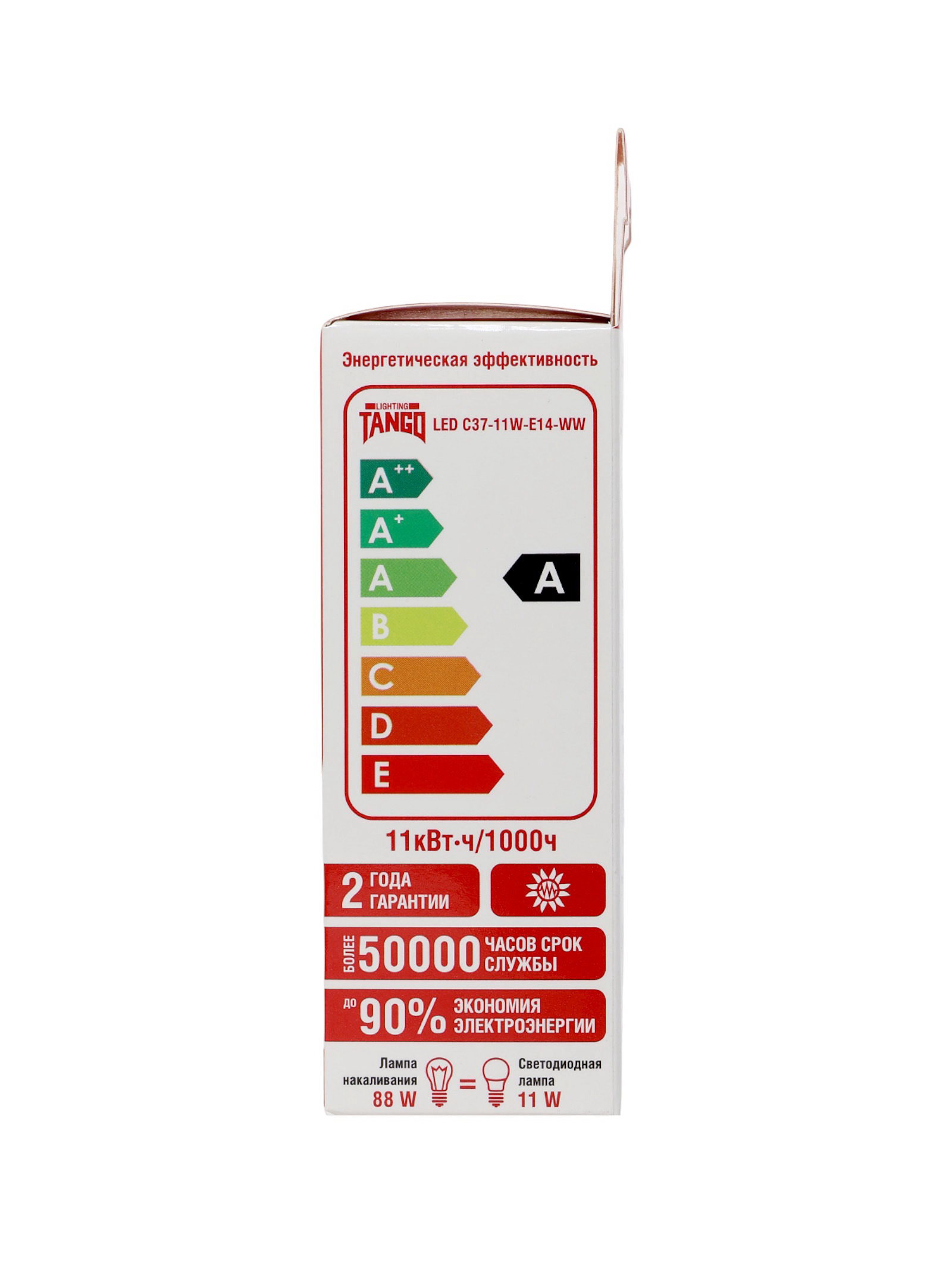 Лампа светодиодная TANGO, С37, 11 Вт, E14, 1045 лм, 6500K, IP20, свечение холодное белое, Китай