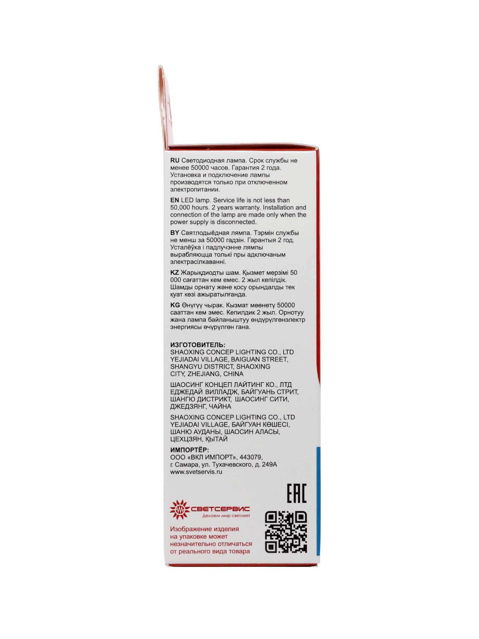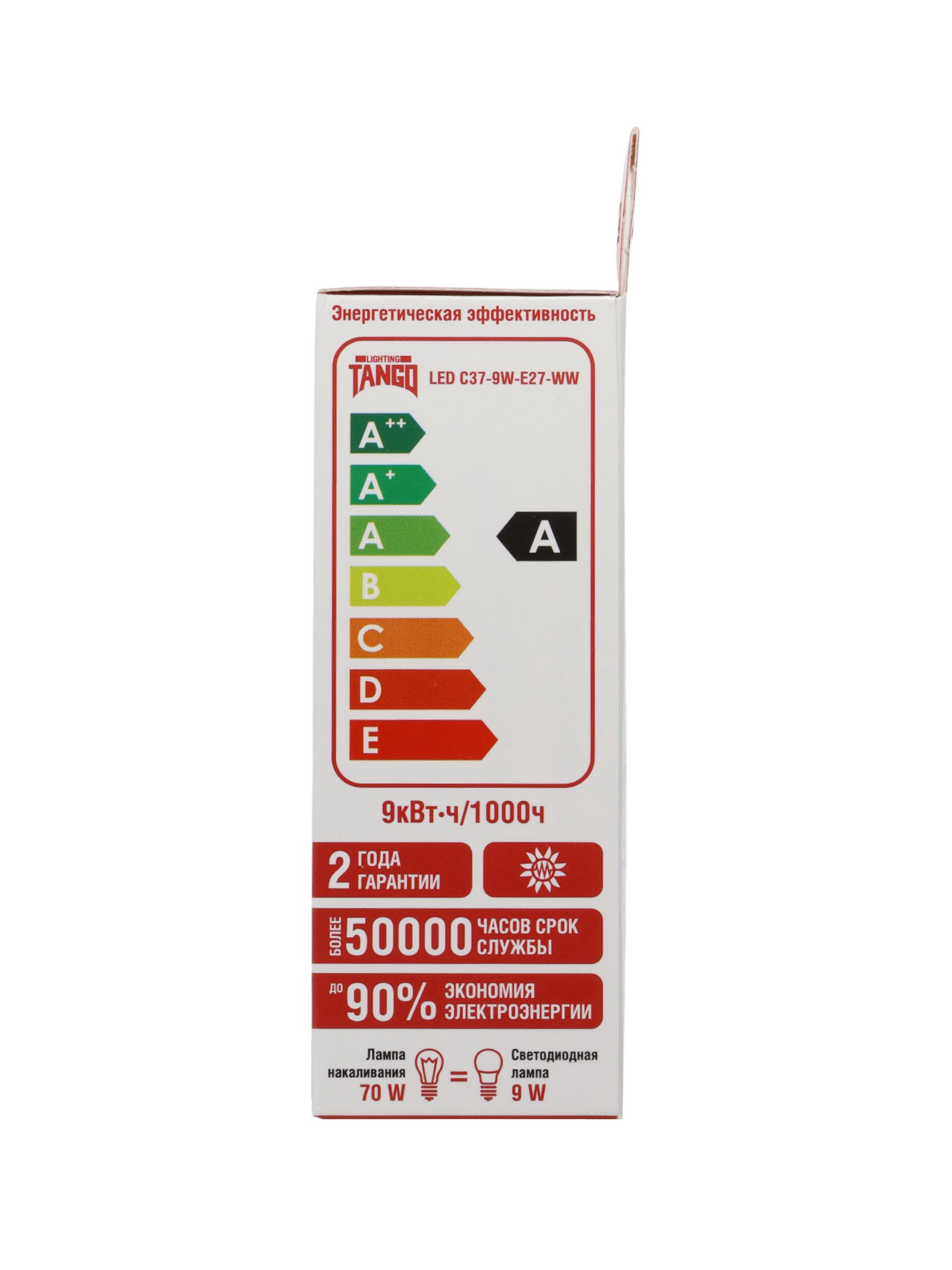 Лампа светодиодная TANGO, С37, 9 Вт, E27, 855 лм, 6500K, IP20, свечение холодное белое, Китай