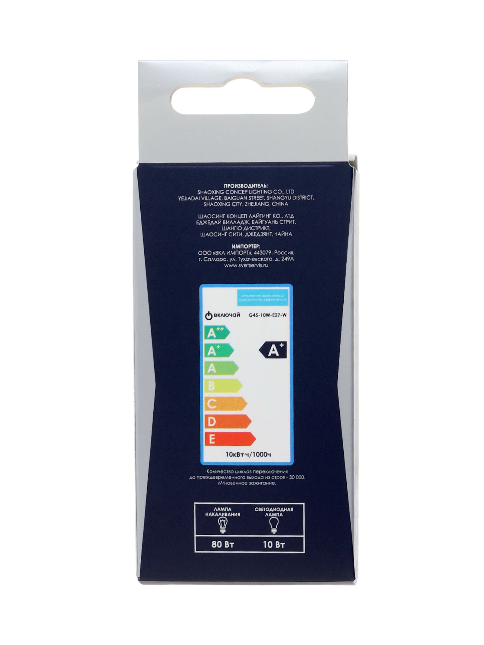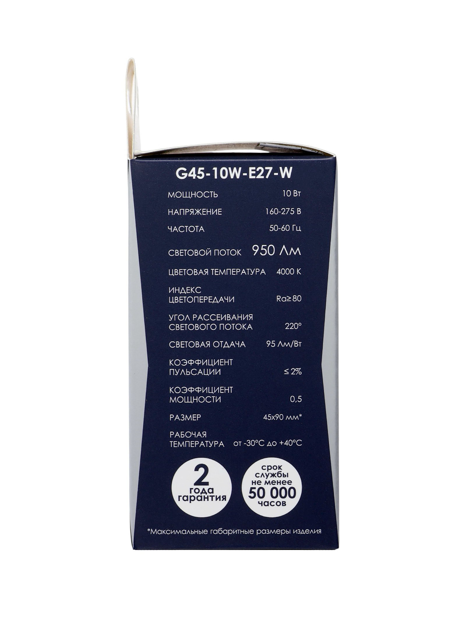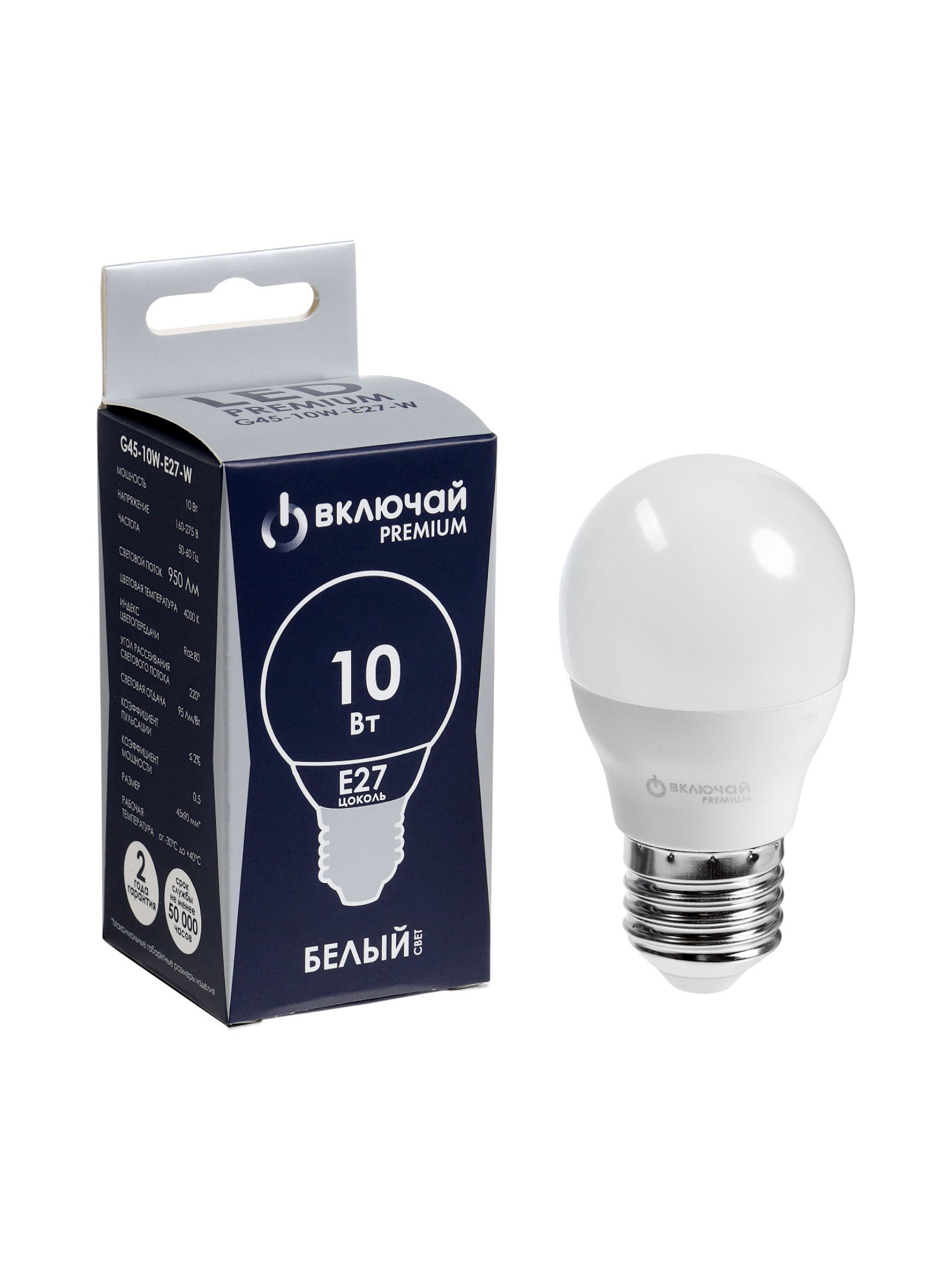 Лампа светодиодная Включай, G45, 10 Вт, E27, 950 лм, 4000K, IP20, свечение нейтральное белое, Китай
