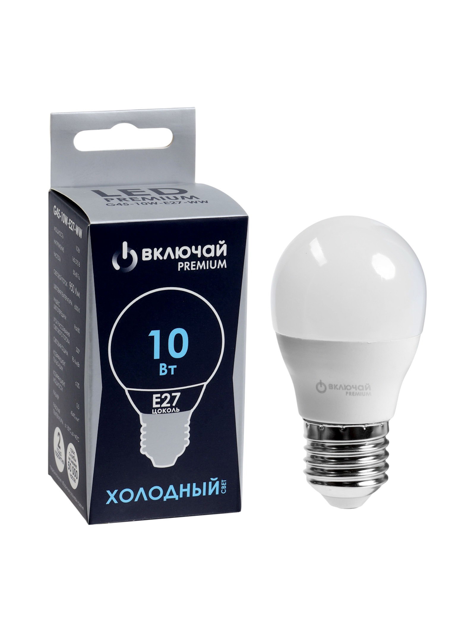 Лампа светодиодная Включай, G45, 10 Вт, E27, 950 лм, 6500K, IP20, свечение холодное белое, Китай