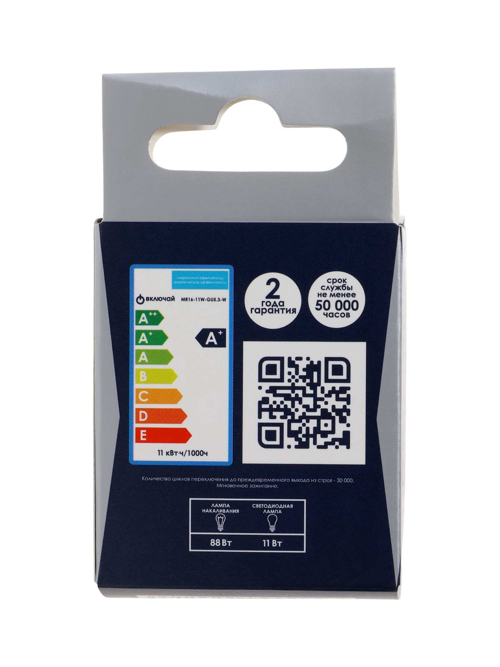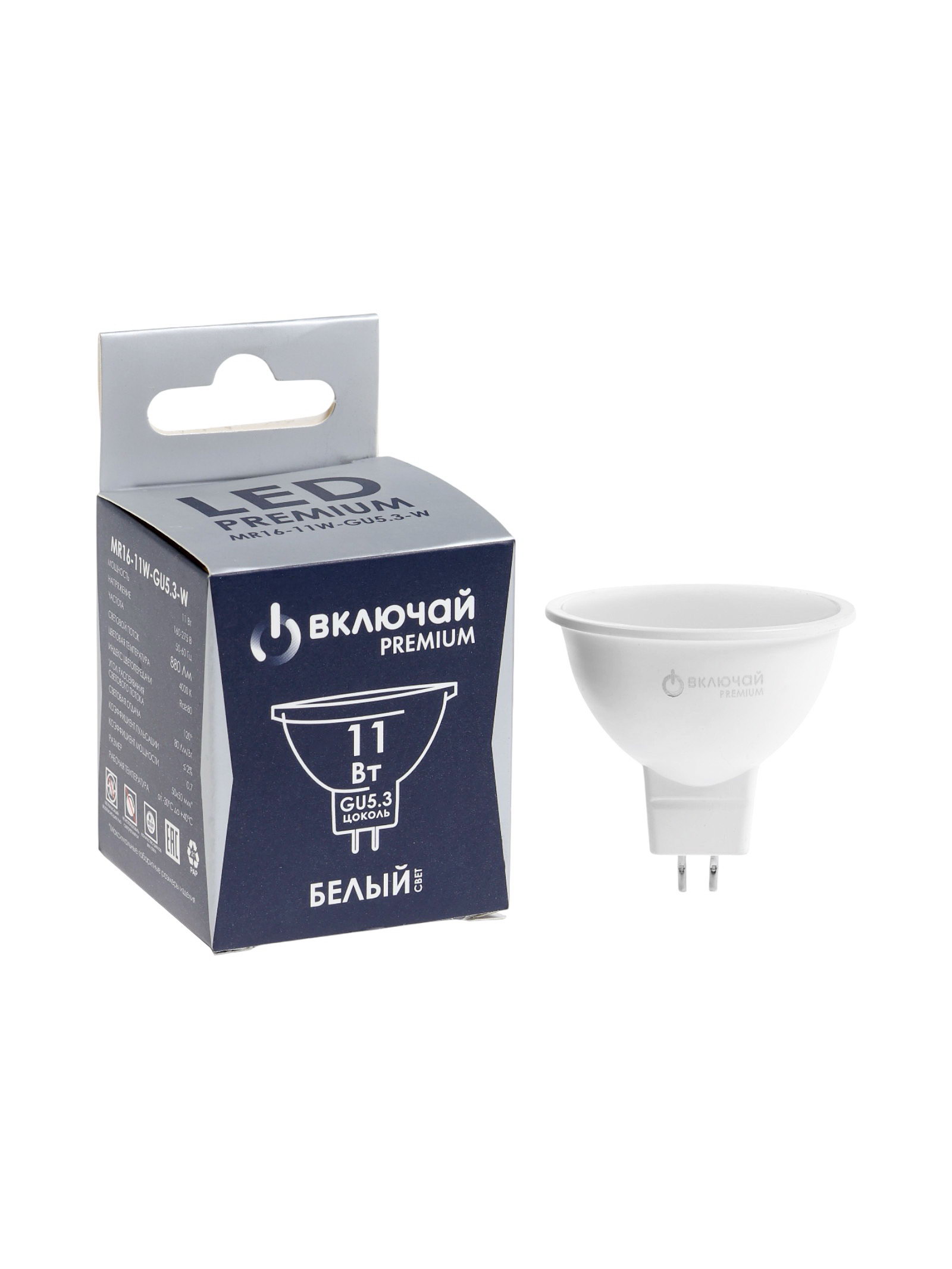 Лампа светодиодная Включай, MR16, 11 Вт, GU5.3, 880 лм, 4000K, IP20, свечение нейтральное белое, Китай