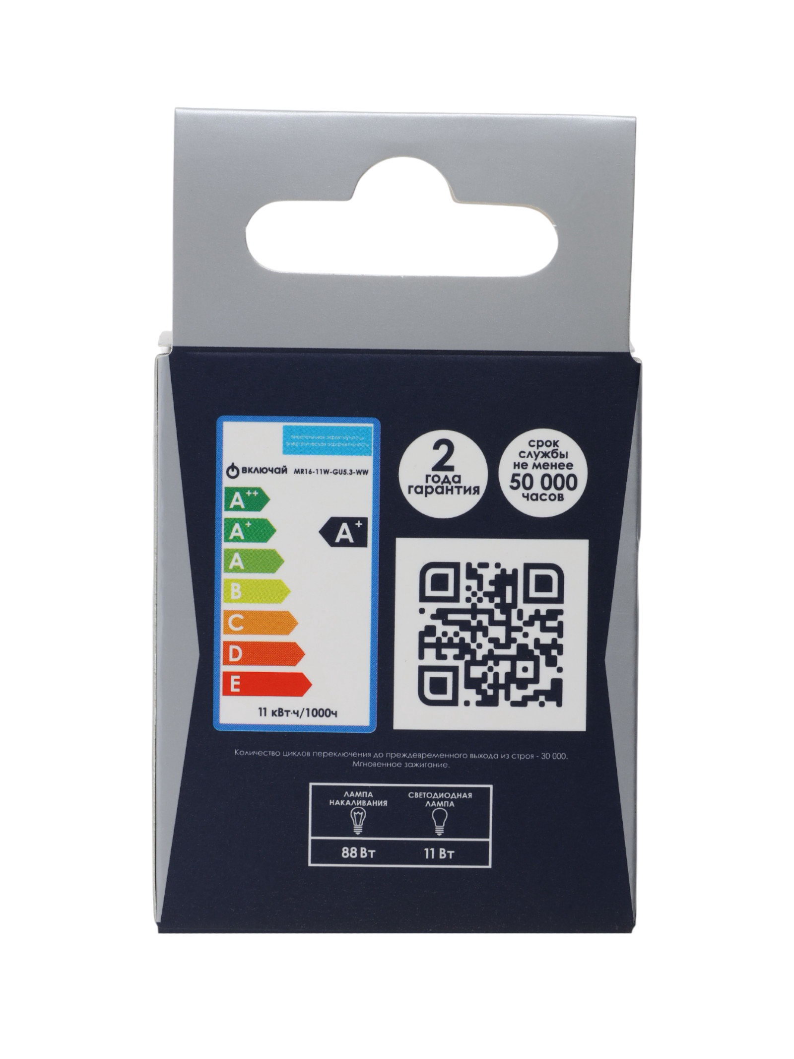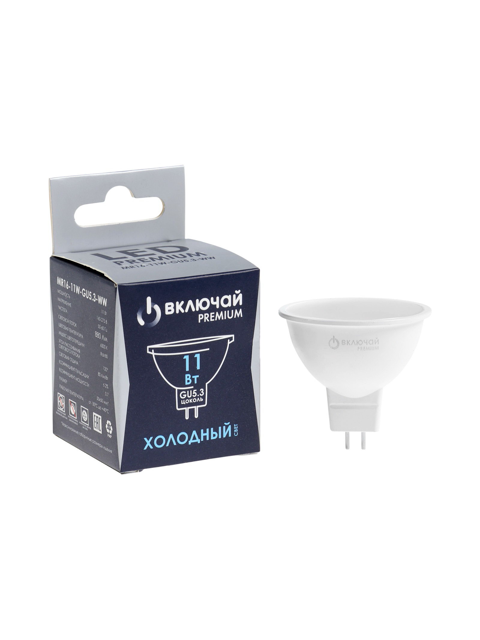 Лампа светодиодная Включай, MR16, 11 Вт, GU5.3, 880 лм, 6500K, IP20, свечение холодное белое, Китай