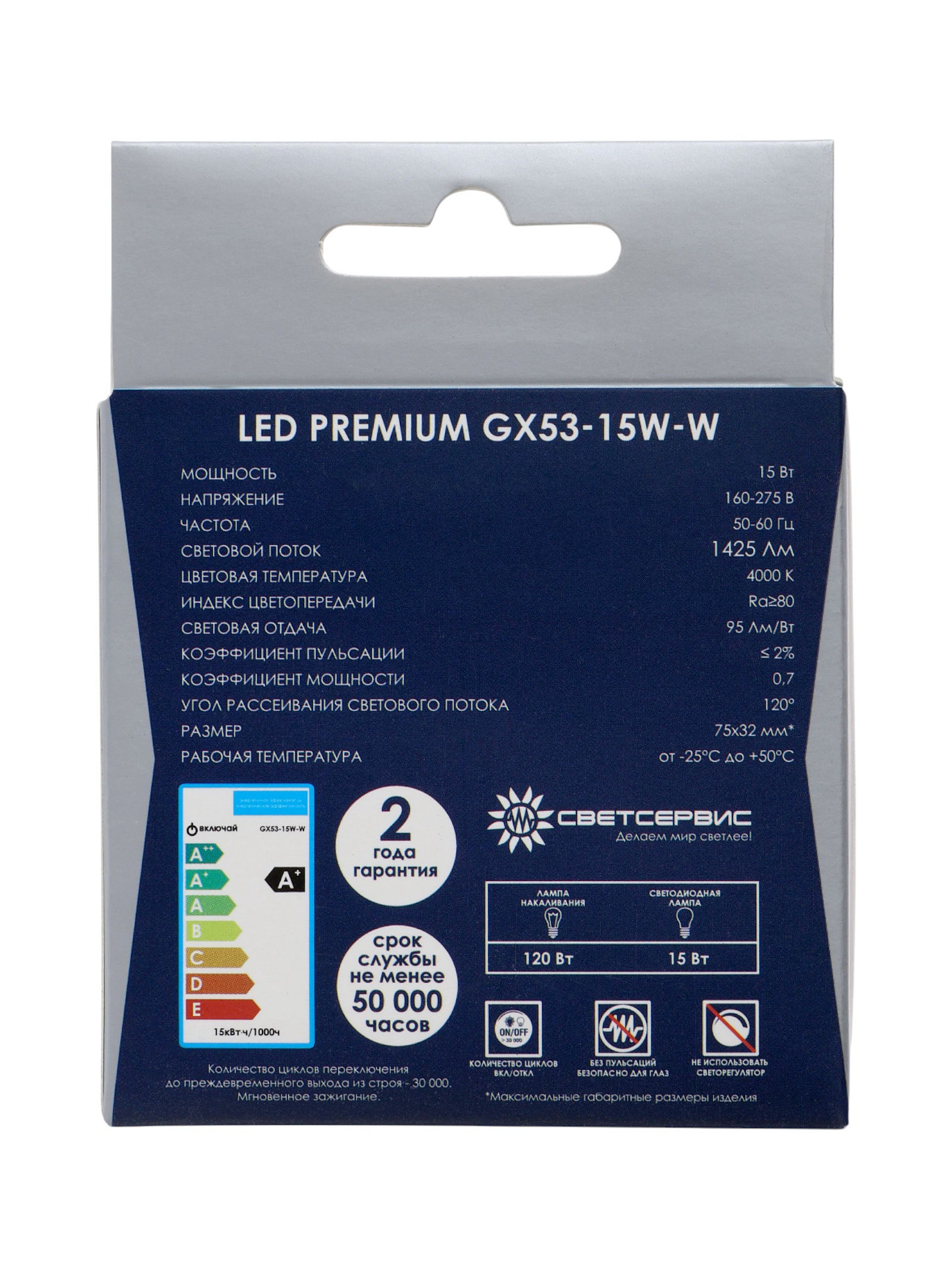 Размер упаковки: 7.5 x 3 x 10 см. Гарантийный срок, мес.: 12 tnved: 8539520000 Температурное ограничение: Нет Цоколь: GX53 Класс энергоэффективности: A+ Световой поток, лм: 1425 Цвет свечения: Нейтрально-белый Мощность, Вт: 15 Индекс цветопередачи: RA > 80 Напряжение, В: 220 Диммируемая: Нет Форма лампы: Tablet Цветовая температура: 4000К Светодиодная лампа серии "Включай" с цоколем GX53 представляет собой современный источник света, который сочетает энергоэффективность и практичность. При мощности всего 15 ?Вт она создаёт яркое нейтрально-белое свечение 4000?К и световой поток 1425 ?лм, обеспечивая комфортное освещение помещения с высокой цветопередачей (Ra?>?80). | ||