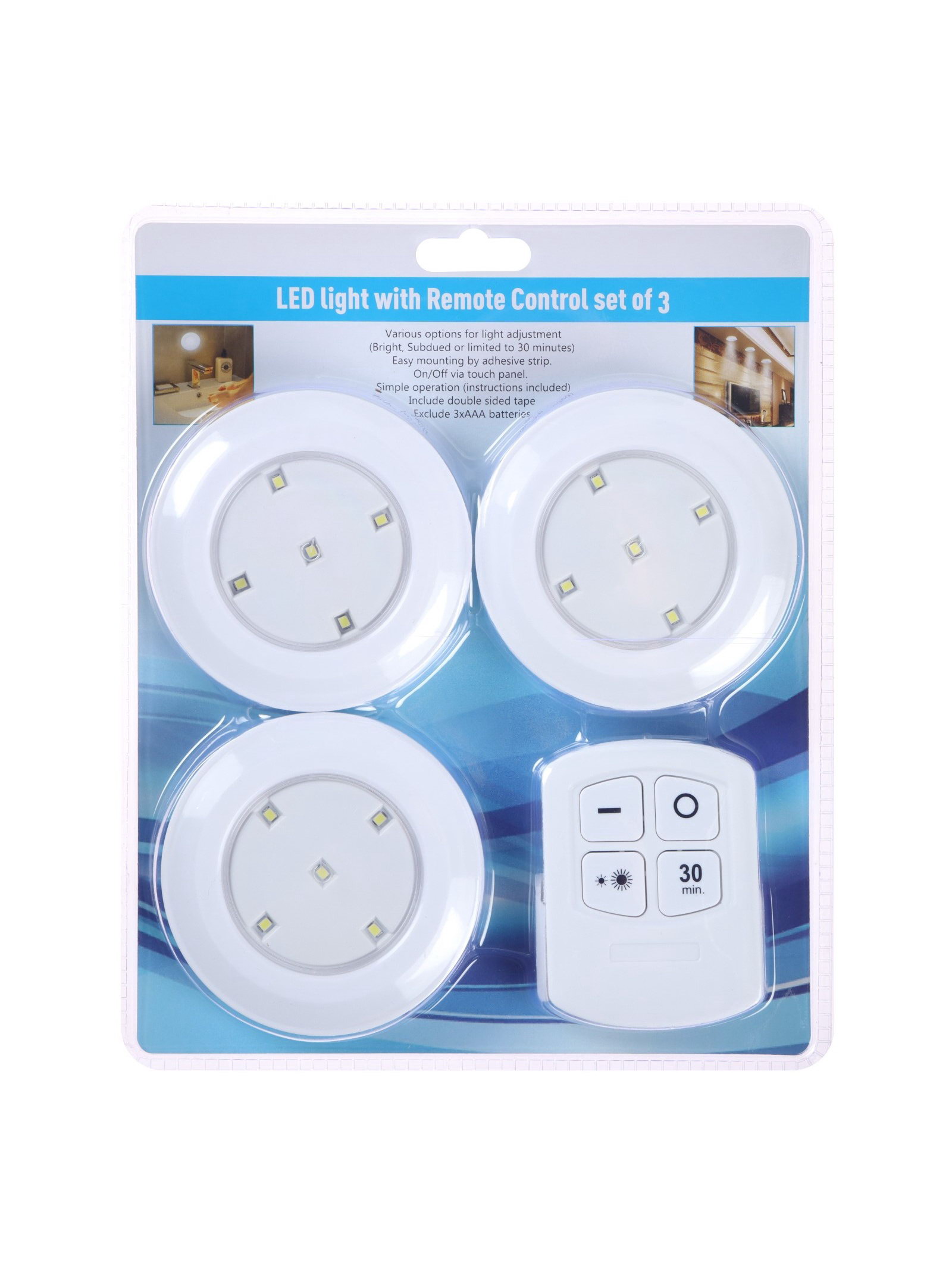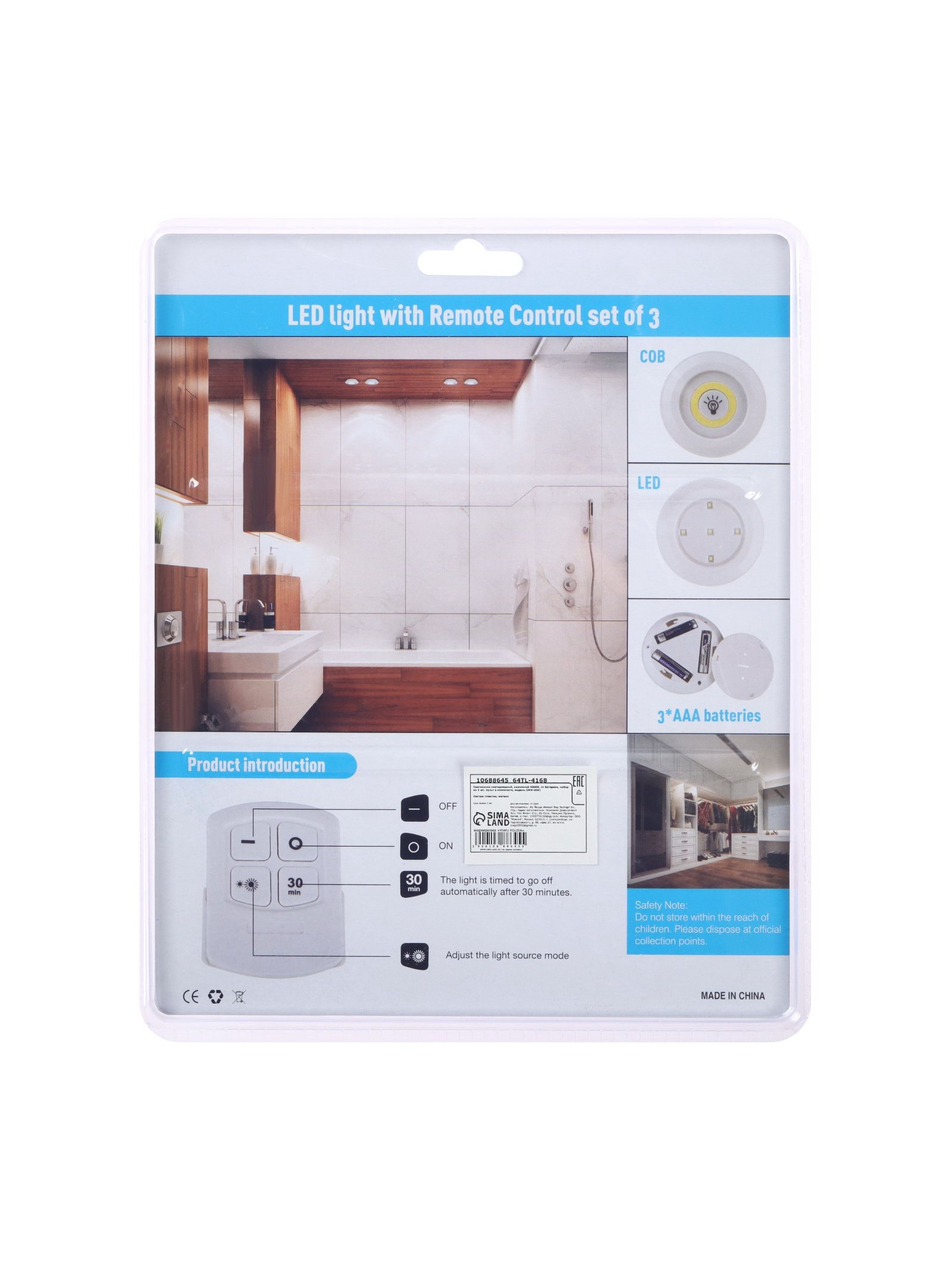Набор светильников светодиодных, 3 штуки, нажимной, 4000К, от батареек, пульт в комплекте, 20x25x2.8 см., Китай