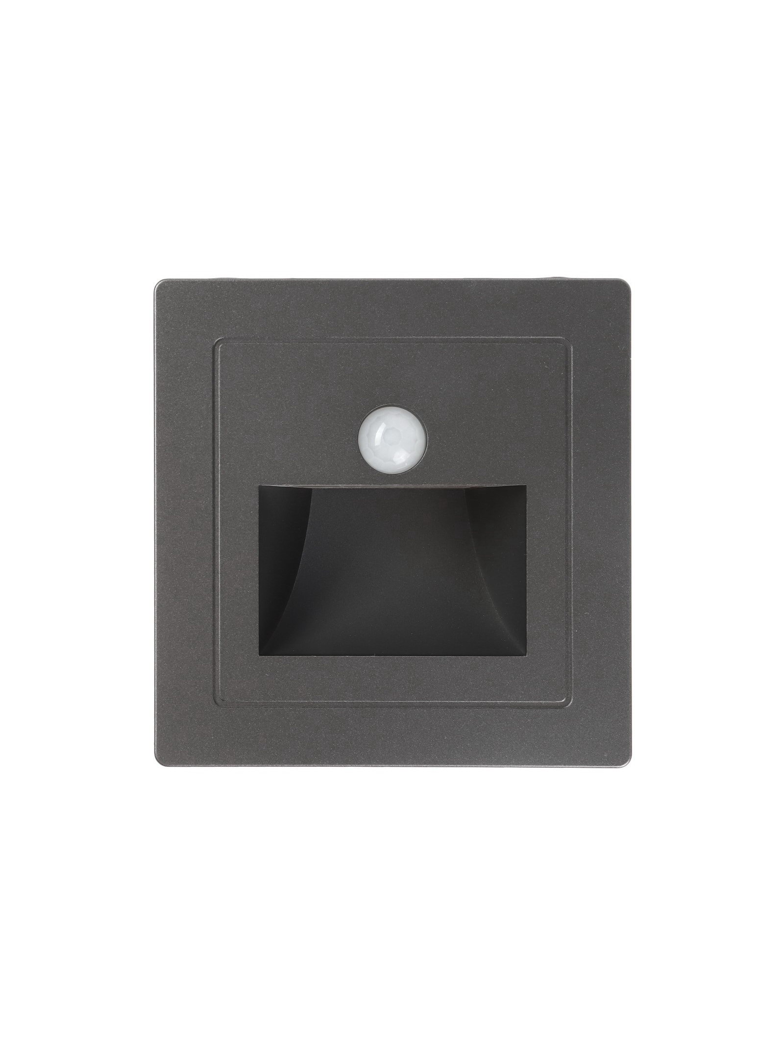 Встраиваемый светильник для лестницы с датчиком движения, 1.5 Вт, 60 Лм, 3000К, 86x86 мм, 220 В, серебристый, свечение тёплое белое, 8.5x8.5x3.5 см., Китай