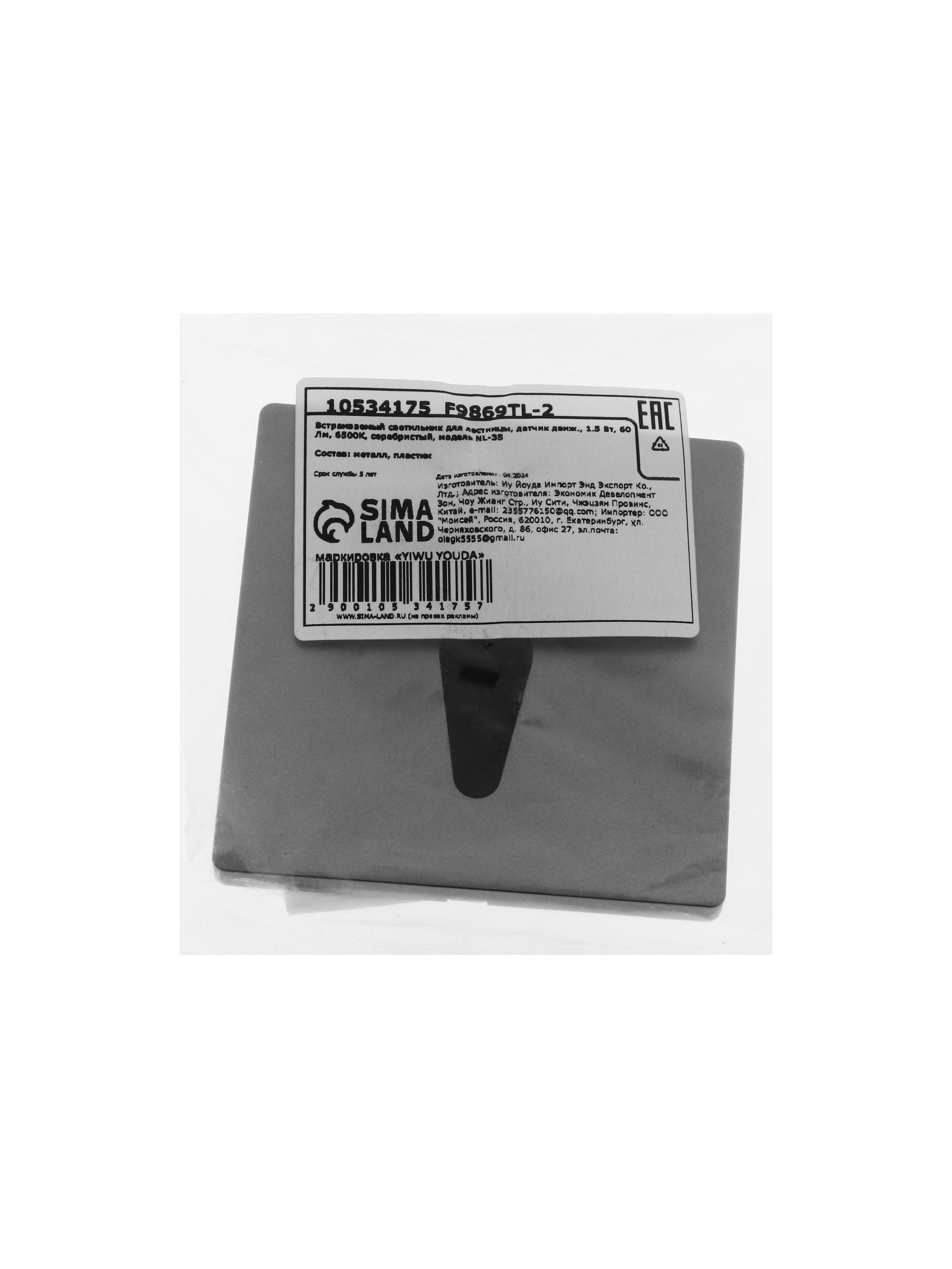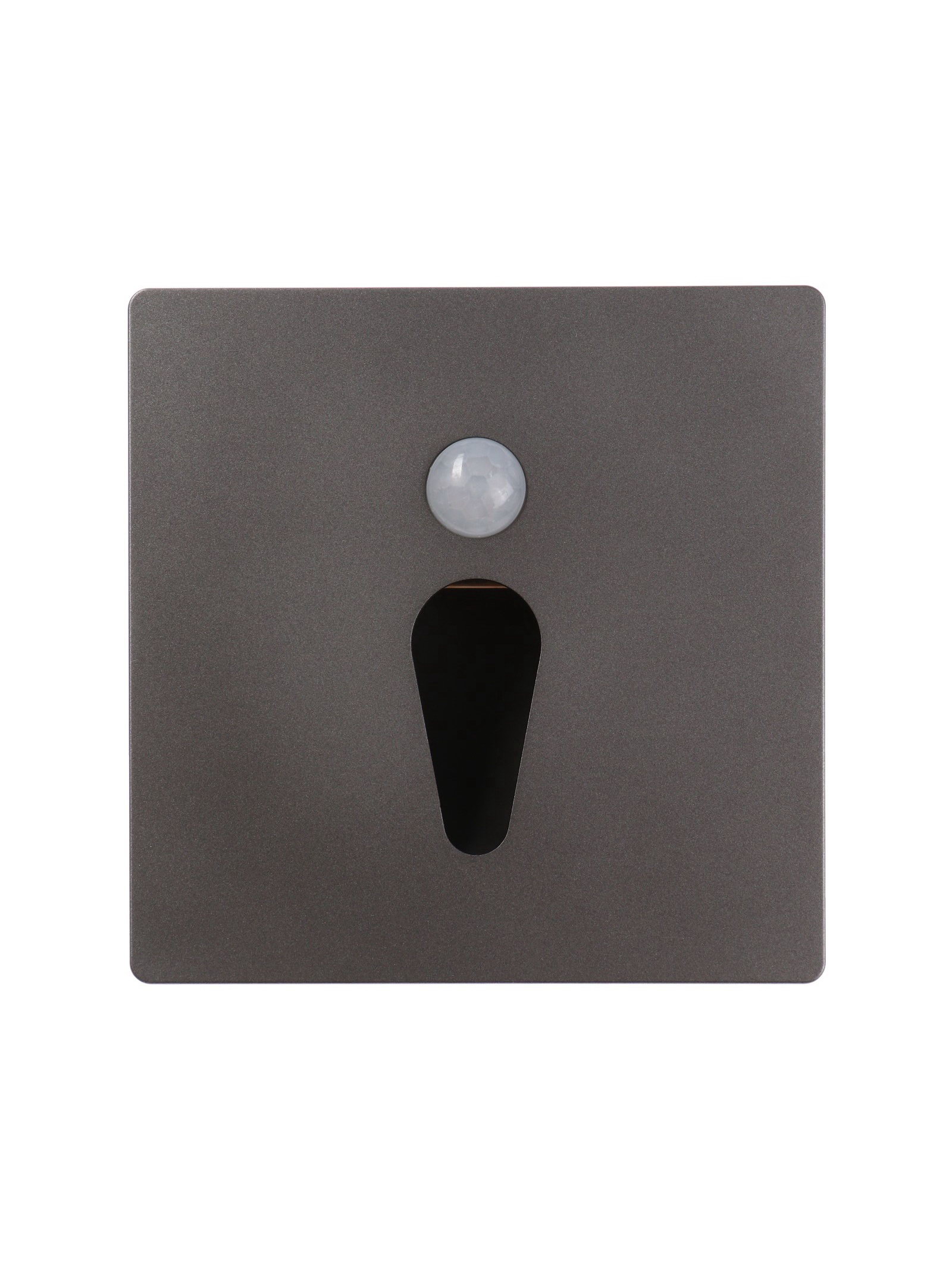 Встраиваемый светильник для лестницы NL-35, с датчиком движения, 1.5 Вт, 60 Лм, 6500К, 86x86 мм, серебристый, свечение холодное белое, 8.6x8.6x3.1 см., Китай