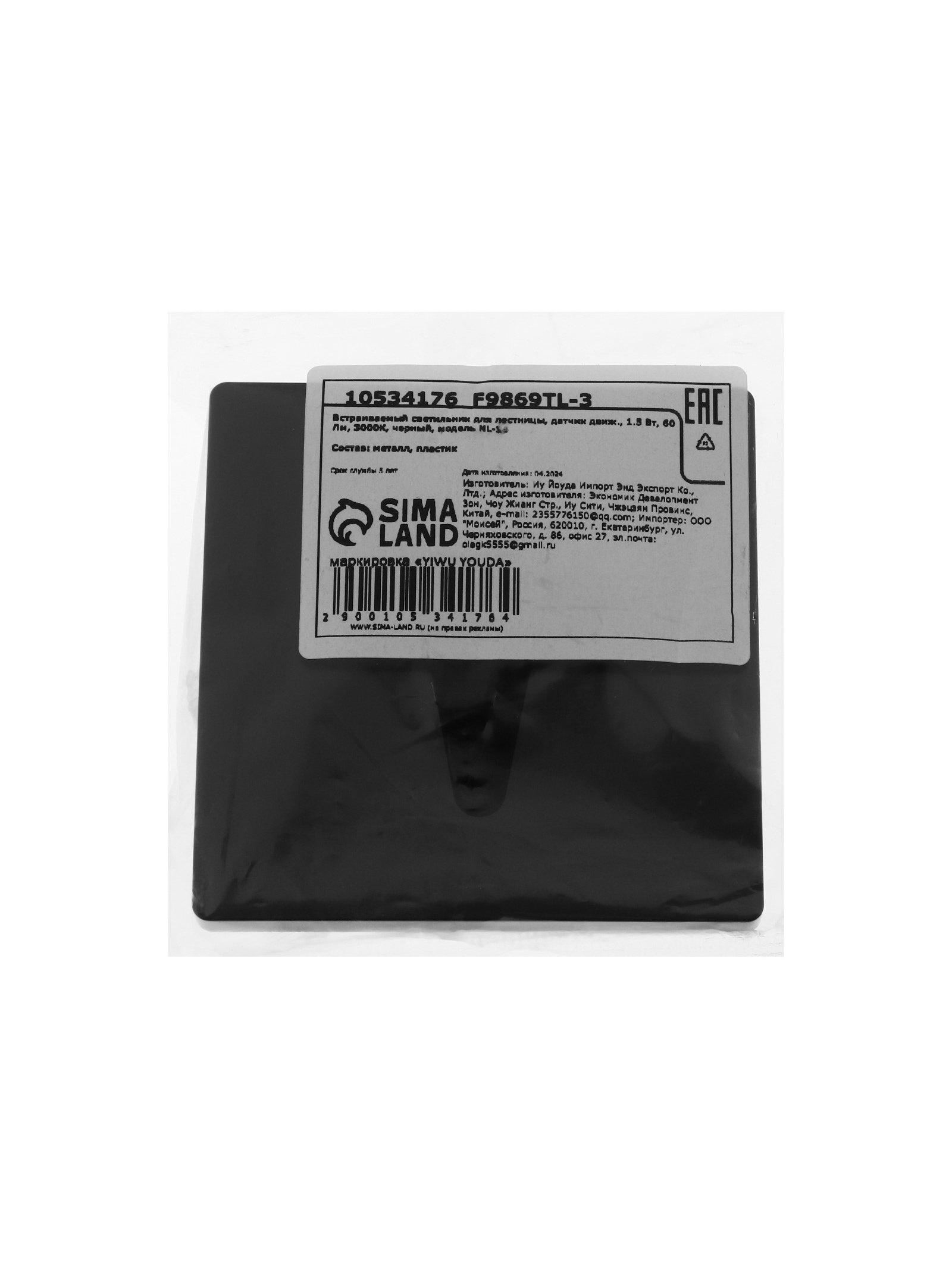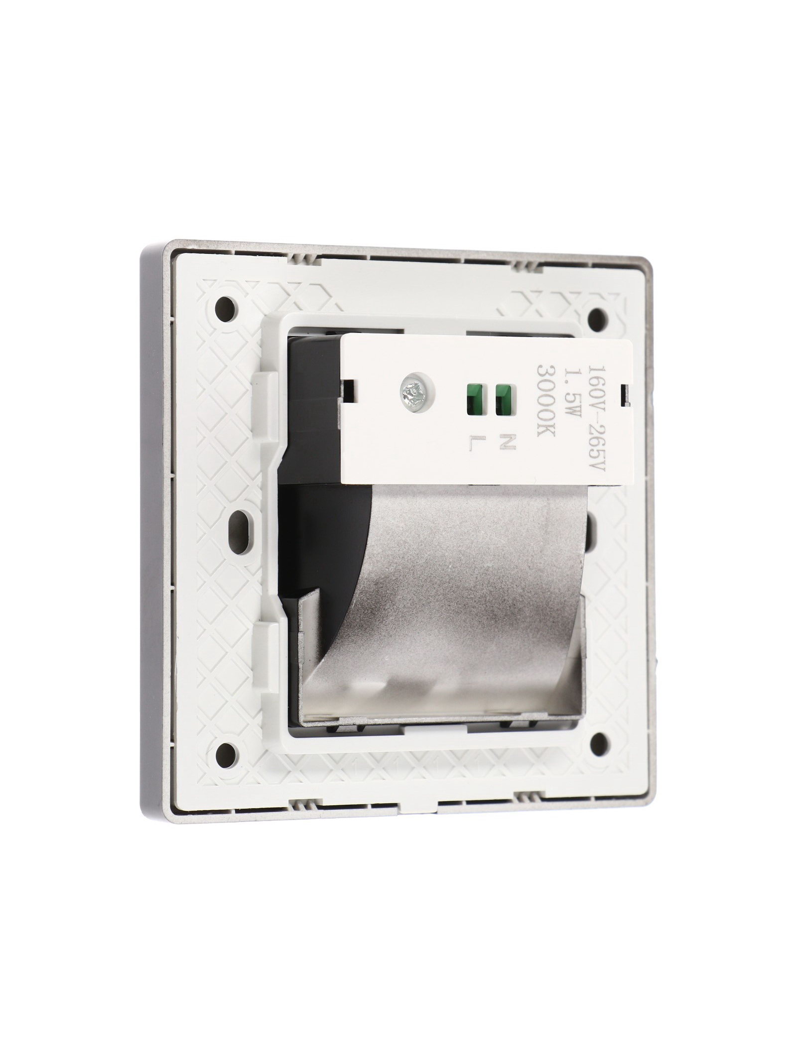 Встраиваемый светильник для лестницы NL-34, с датчиком движения, 1.5 Вт, 60 Лм, 3000К, 86x86 мм, чёрный, свечение тёплое белое, 8.6x8.6x3.1 см., Китай