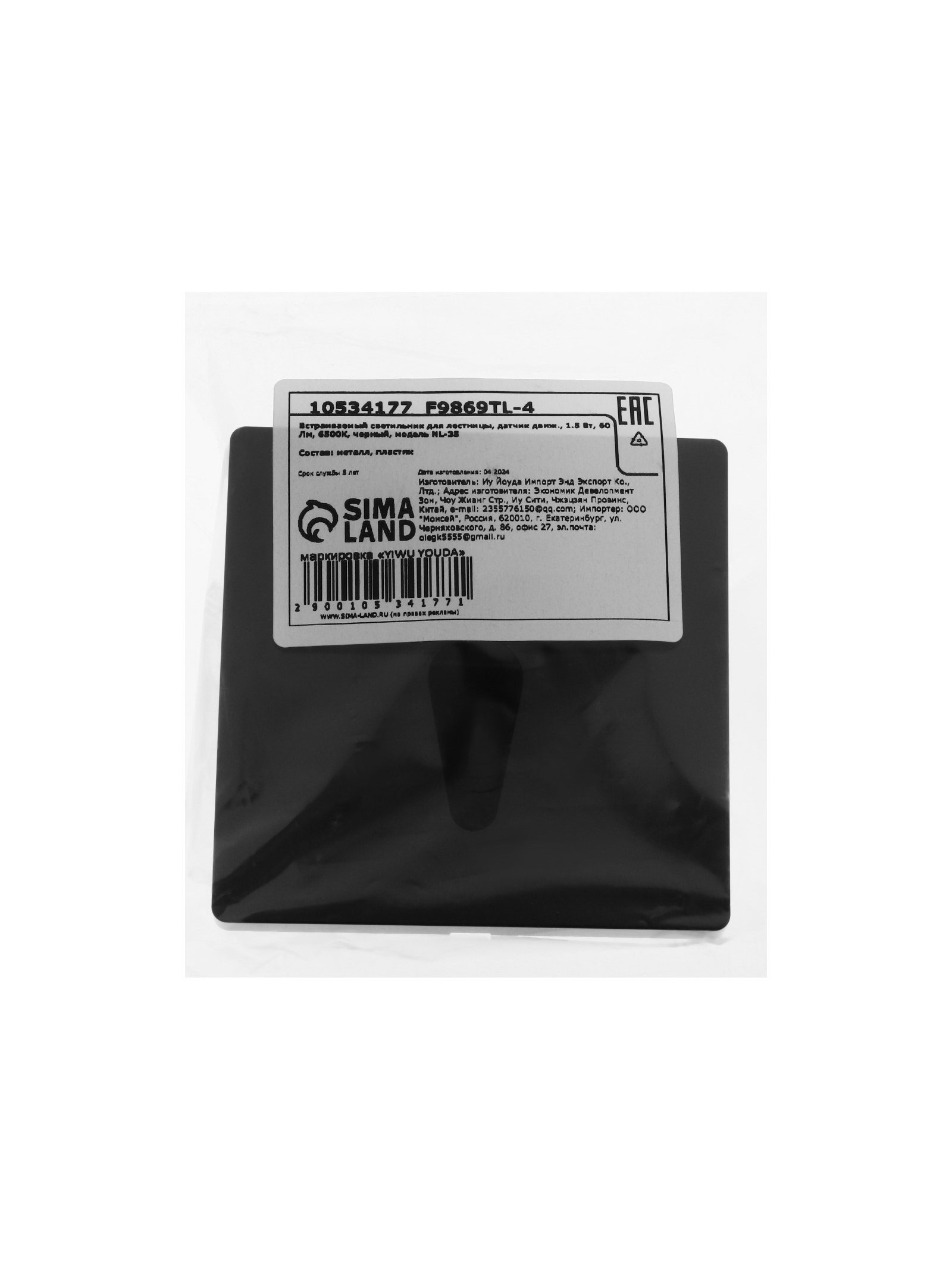 Встраиваемый светильник для лестницы NL-35, с датчиком движения, 1.5 Вт, 60 Лм, 6500К, 86x86 мм, чёрный, свечение холодное белое, 8.6x8.6x3.1 см., Китай