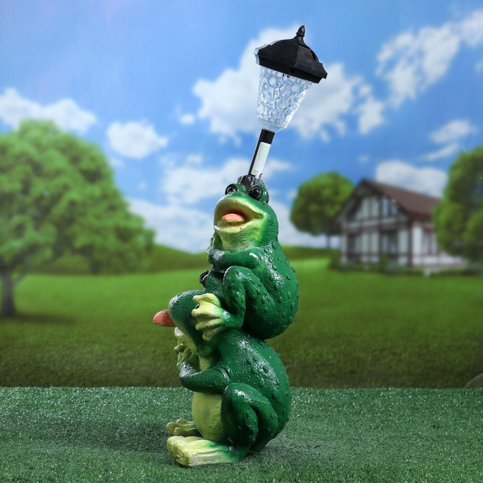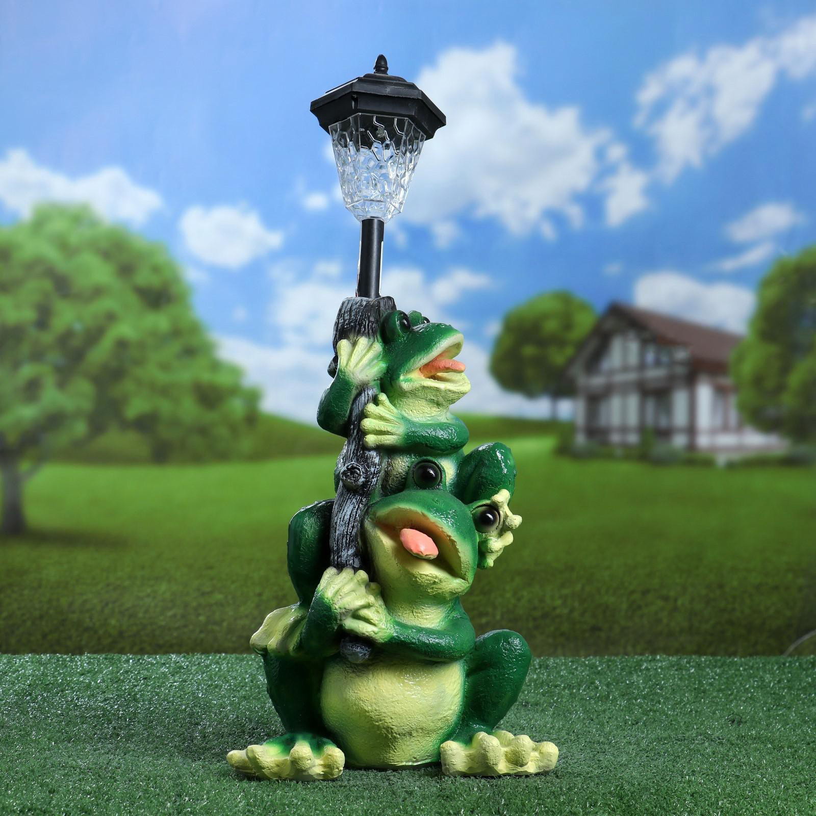 Садовая фигура - фонарь из полистоуна "Лягушата с фонарём", 24.5x19.5x57 см, Хорошие сувениры, Россия
