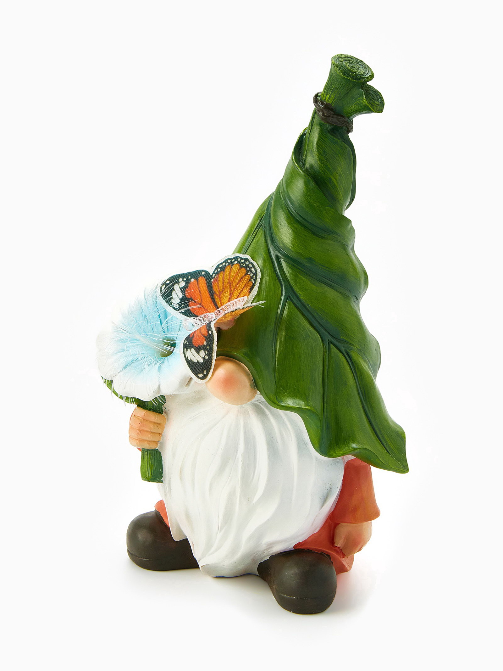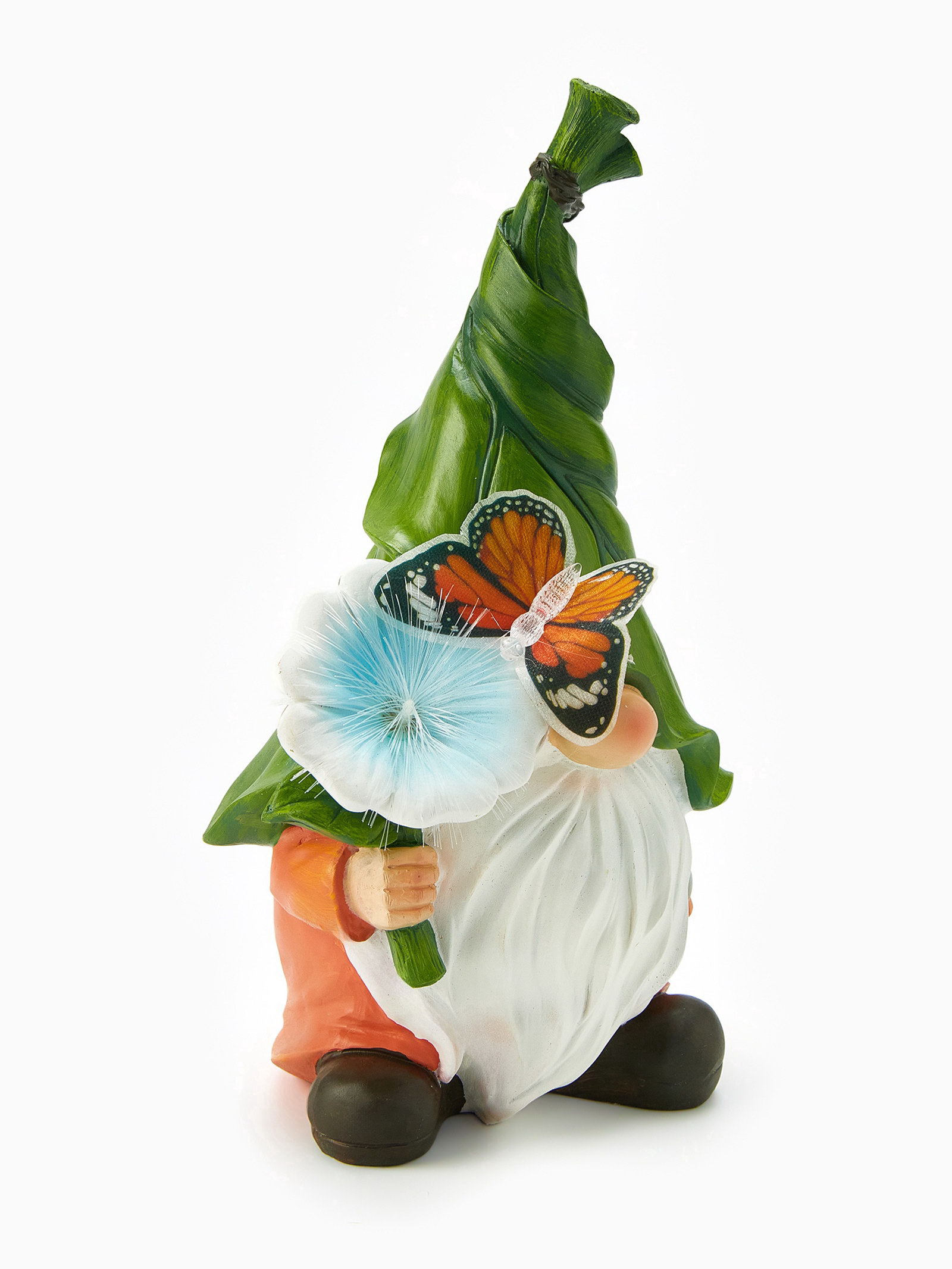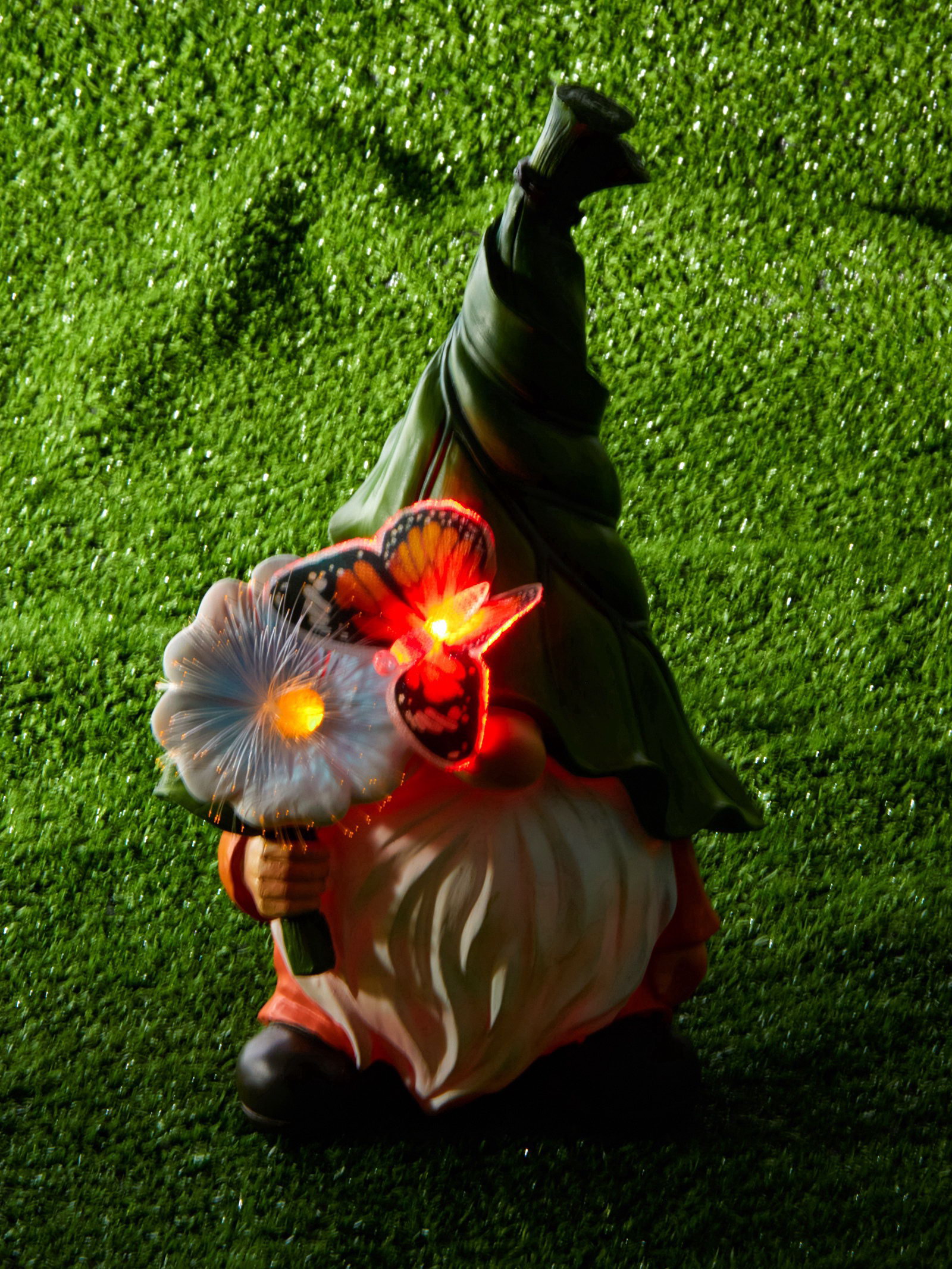 Садовая фигура из полистоуна "Гном с цветочком", 31.5x20x17 см, с подсветкой, TAKE IT EASY, Китай