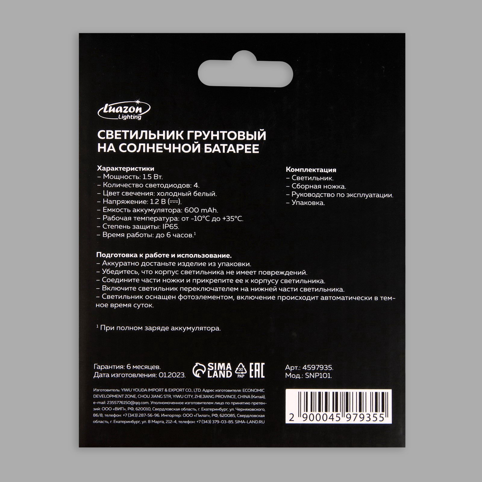 Садовый светильник на солнечной батарее, 4 LED, свечение белое, 11.5x11.5x3 см., Luazon Lighting, Китай