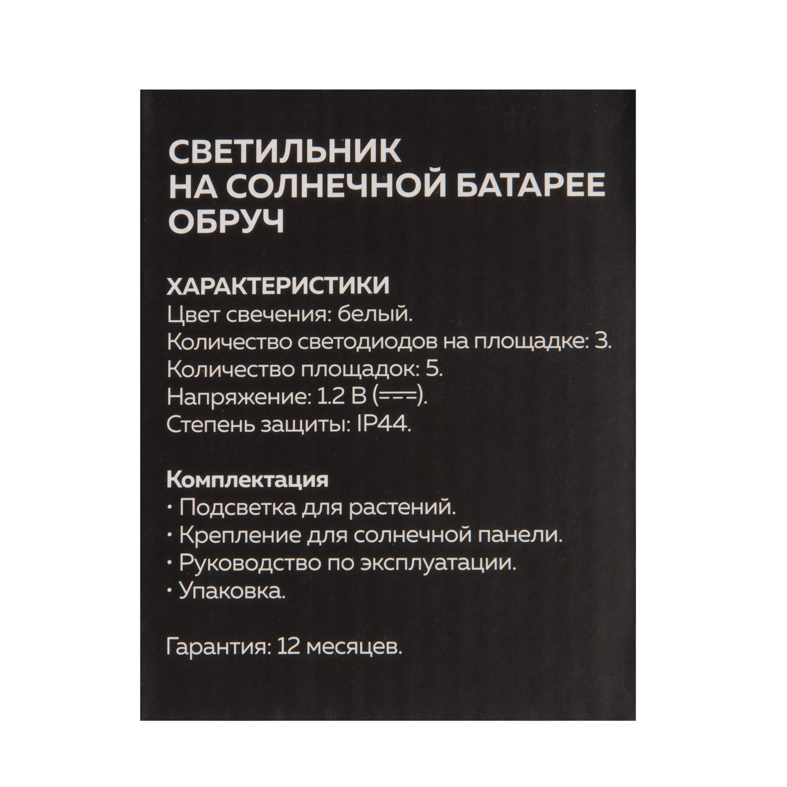 Садовый светильник "Обруч", уличный, на солнечной батарее, 15 LED, свечение мульти, Luazon Lighting, Китай