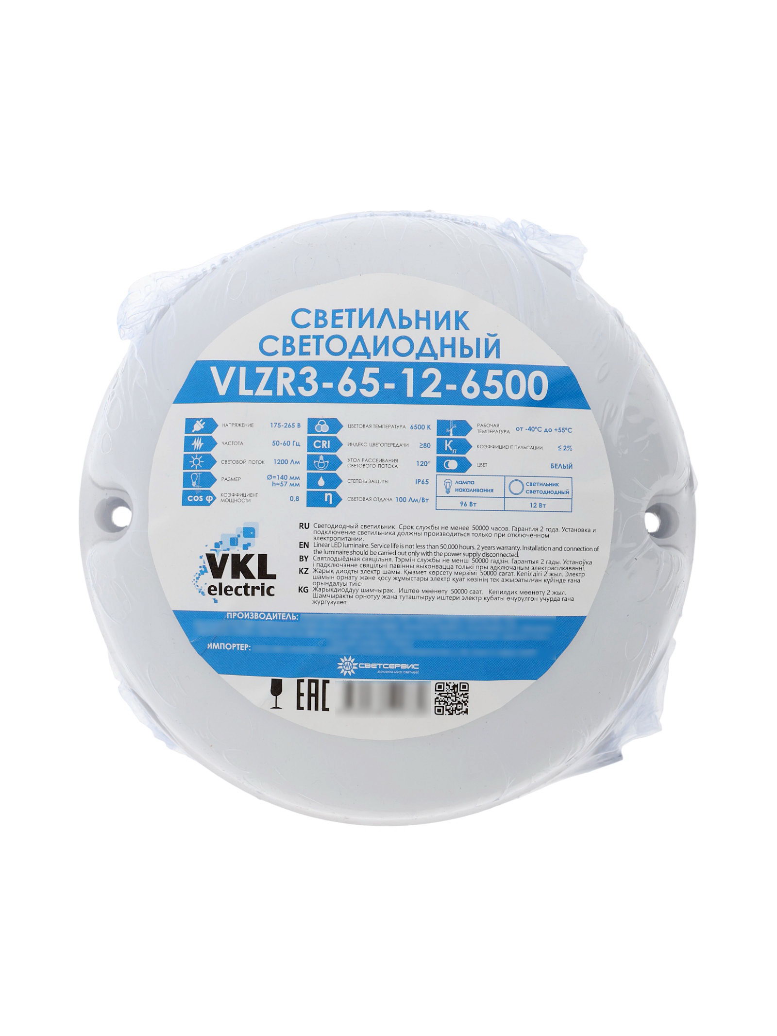 Светильник светодиодный Electric герметичный, 12 Вт, 1200 лм, IP65, 6500К, круглый, белый, VKL, Китай
