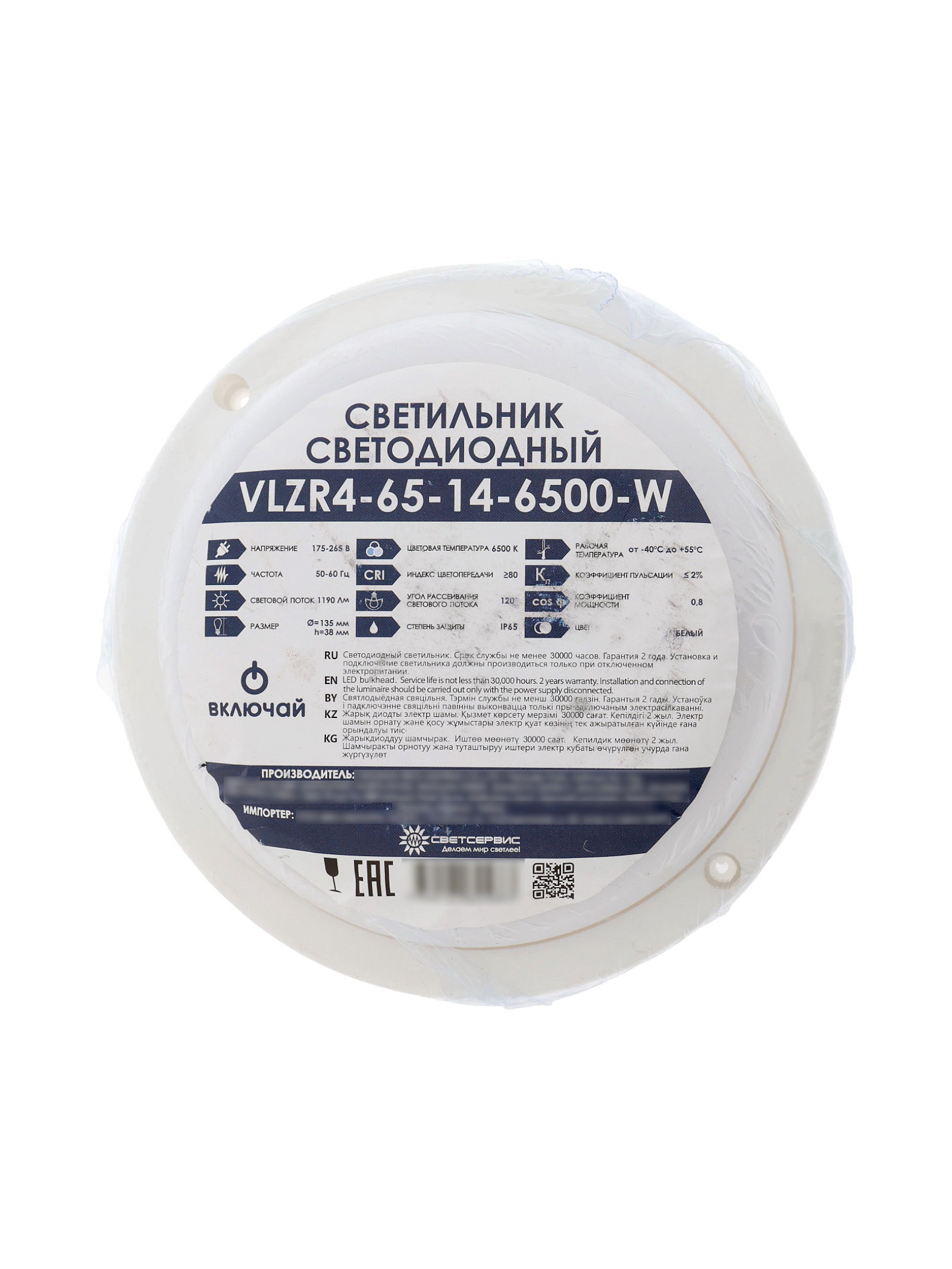 Светильник светодиодный герметичный, 14 Вт, 1190 лм, IP65, 6500К, круглый, белый, Включай, Китай