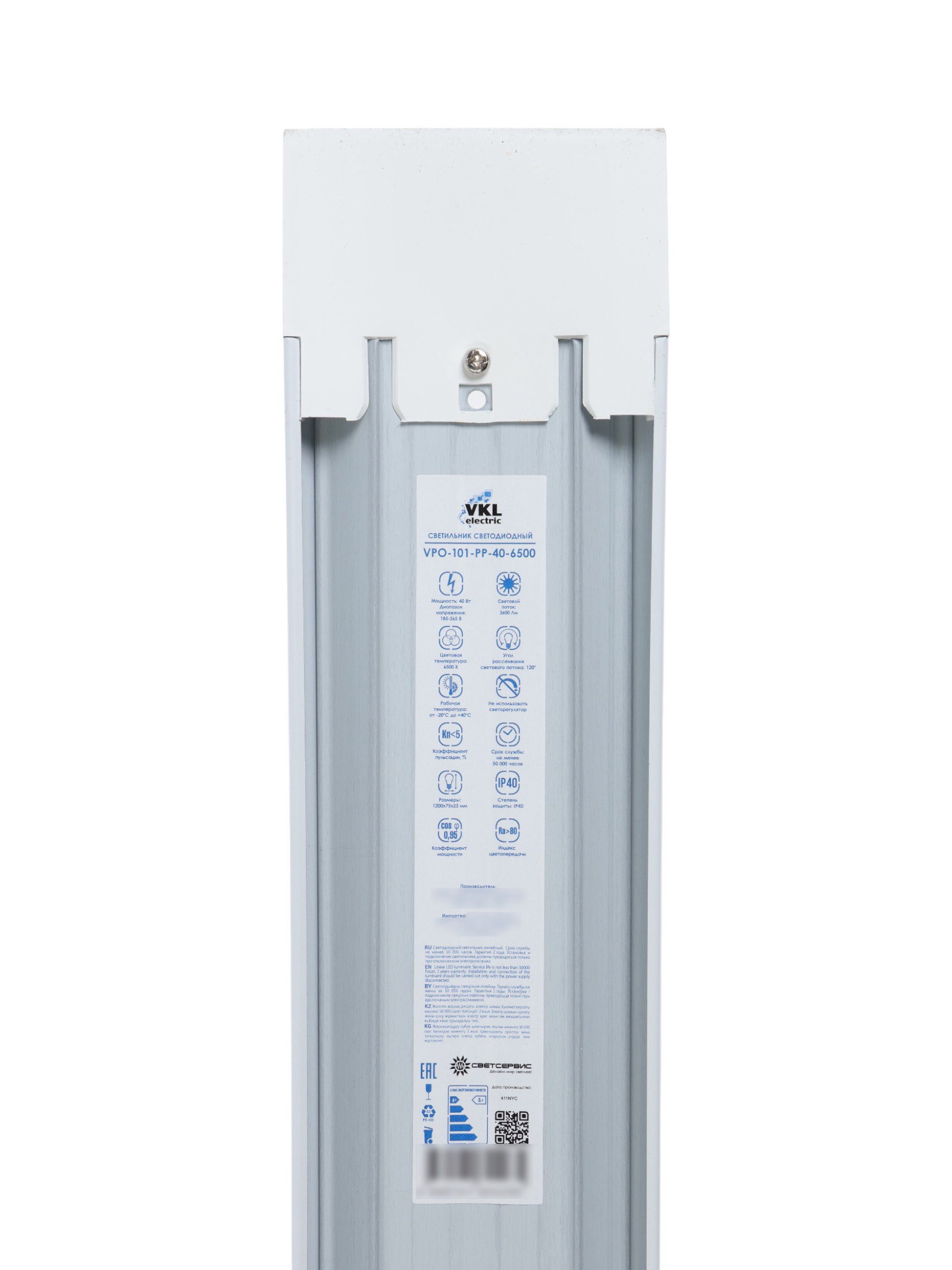 Светильник светодиодный Electric, 40 Вт, 3600 лм, 6500К, 1200x75x23 мм, матовый, свечение холодное белое, VKL, Китай
