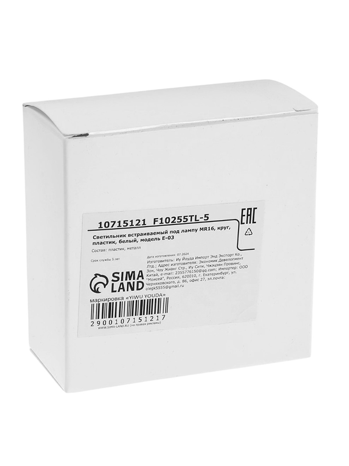 Светильник встраиваемый под лампу MR-16, круглый, пластиковый, белый, 8.1x8.1x3.6 см., Китай