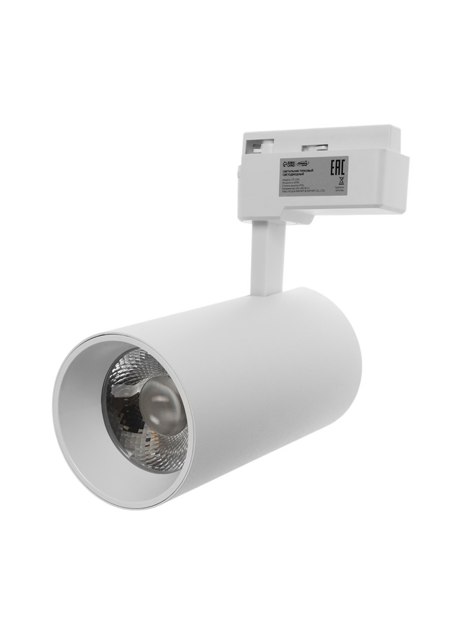 Трековый светильник Luazon lighting LTL-074, 40 Вт, 3400 Лм, 6500К, белый, свечение холодное белое, 7.5x7.5x16.8 см., Китай