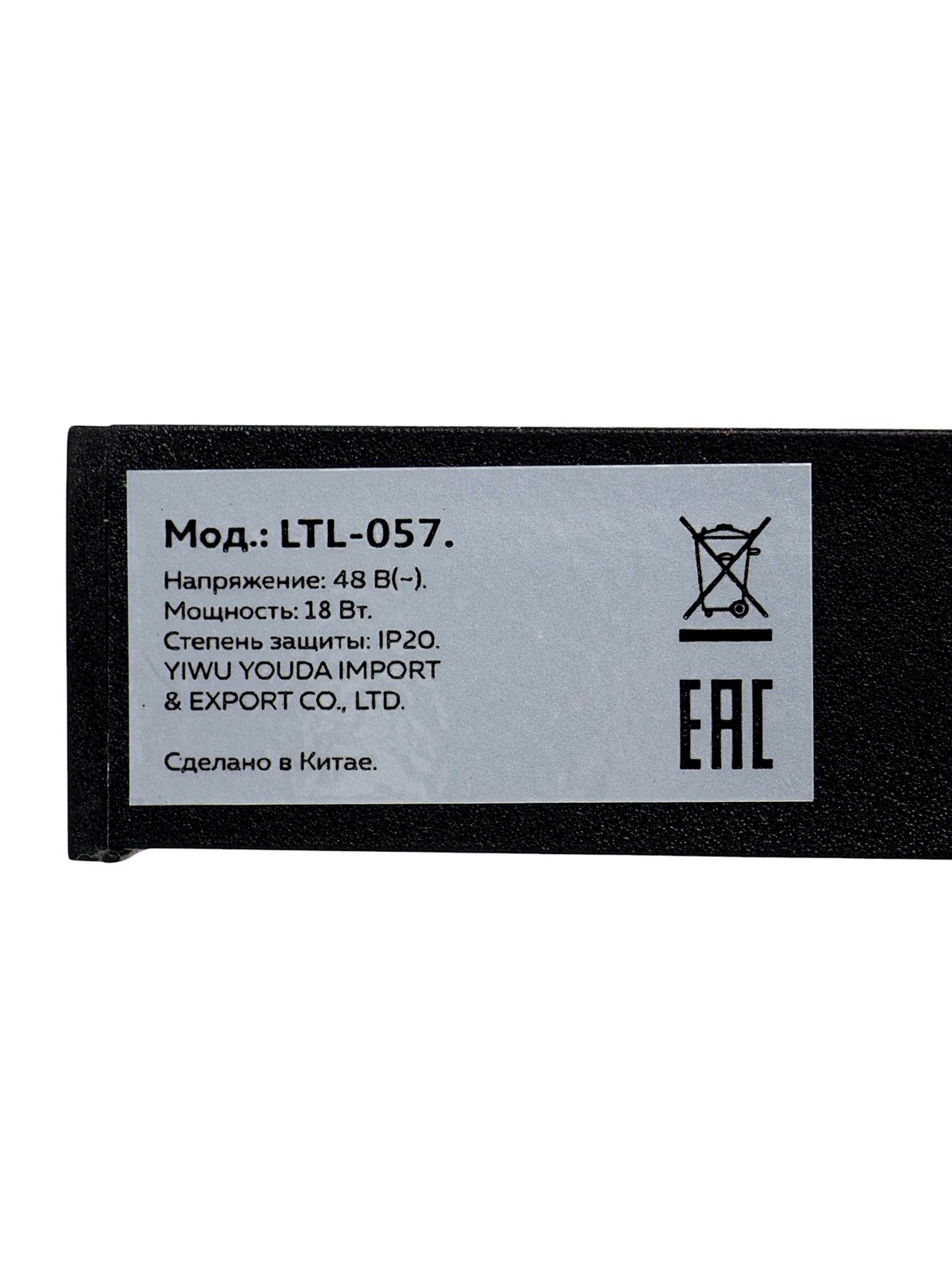 Трековый магнитный светильник, серия "Broad" LTL-057, 18 Вт, 1440 Лм, 48В, 3000К, черный, 2.2x32.3x4.5 см., Китай