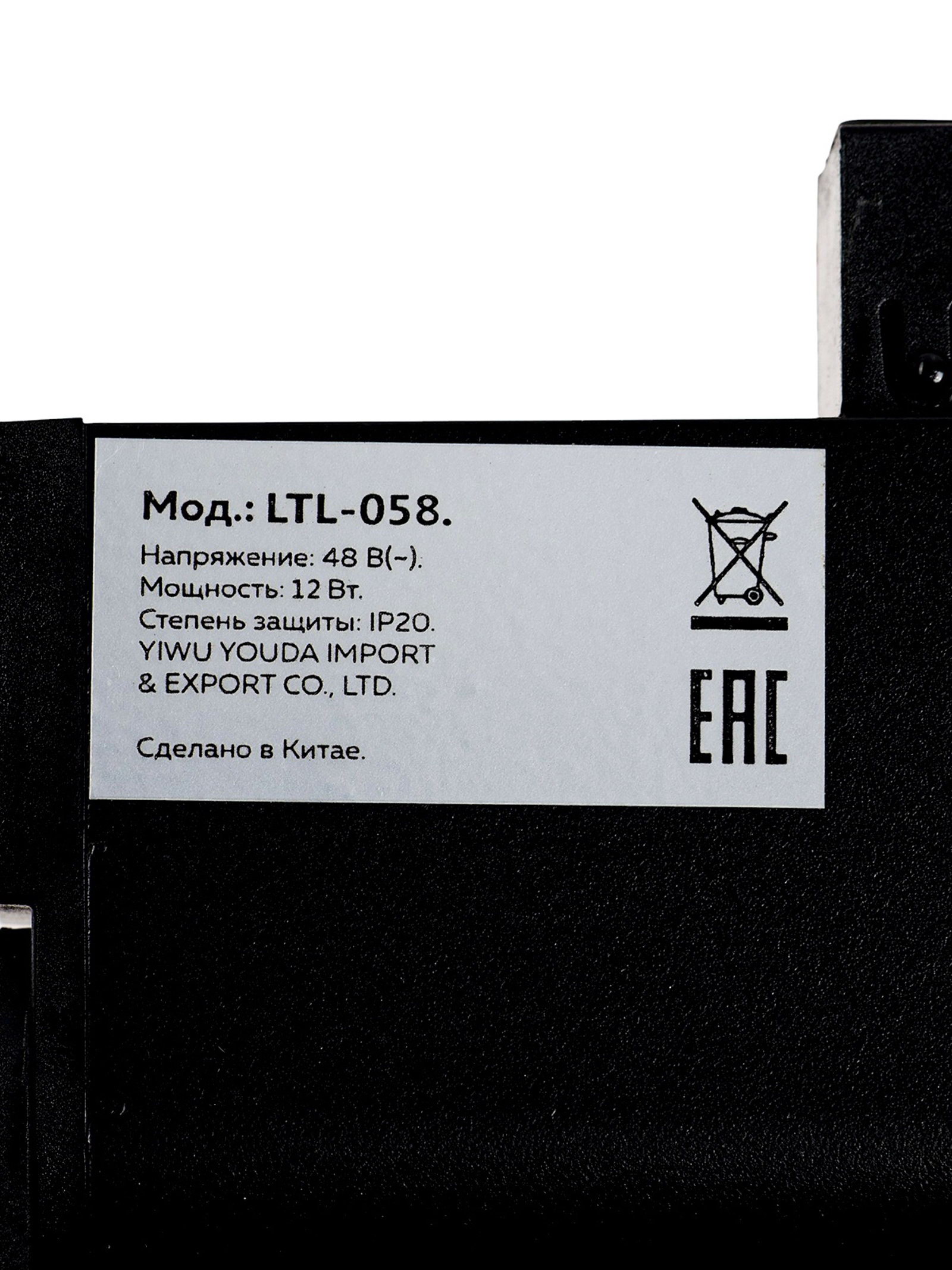 Трековый магнитный светильник, серия "Broad" LTL-058, 12 Вт, 960 Лм, 48В, 4000К, черный, 2.2x21.6x7 см., Китай