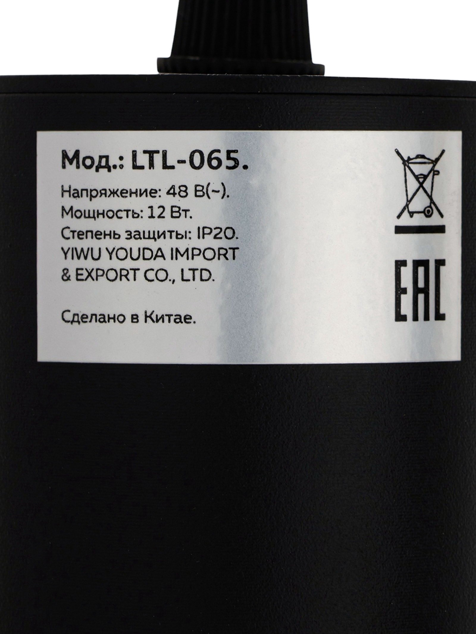 Трековый магнитный светильник, серия "Broad" LTL-065, 12 Вт, 960 Лм, 48В, 3000К, черный, 5.5x5.5x30 см., Китай